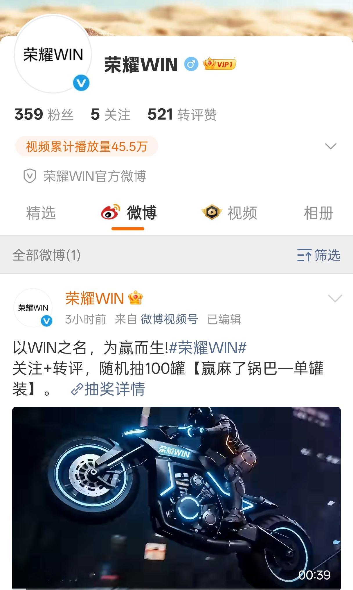 荣耀WIN单开了微博,何意味?