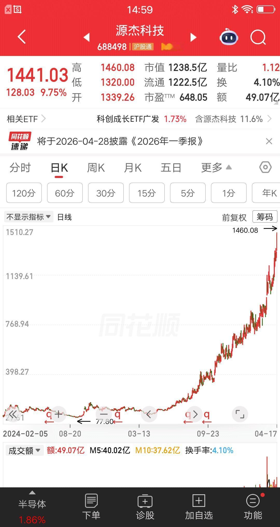 一位广东的股民,今天割肉了手里的低位绩优股,满仓换到了源杰科技。他盘中看到快讯,源杰科技股价超越茅台,成为大A新股王。他被套牢几个月,压抑的情绪再也绷不住了。一键清仓了所有股票,直接换到源杰科技,以1425元的价格买了28万多。 他清楚源杰科技涨了十五六倍,万一套在山顶,猴年马月都解不了套。那他为什么还要追高呢,他的回答太现实了。 他1月6号买的远东传动成本7.97元,套了三个多月了。公司发布了一季报,利润1.96亿增长47%,他开心的手舞足蹈,心想主力有理由拉一波了吧。你们猜怎么样,隔日股价硬了2个点,又趴着不动了。 他还买了金洲管道,深圳华强等,这些所谓的低位绩优股,确实很安全。股价常年也不大涨也不大跌,主打一个折磨人。 反观那些高位股,跌起来确实够猛,很吓人的。但是涨起来又快又高,想赚大钱冷门股是没机会的。