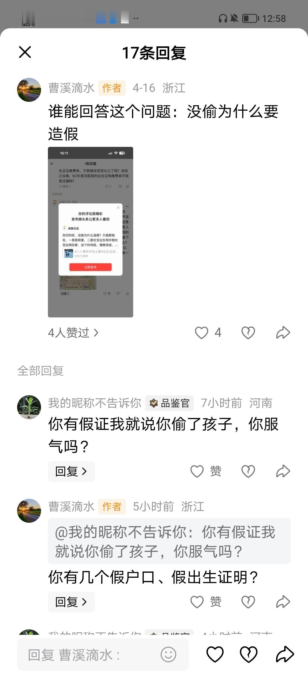 有个网友发问:没偷为什么要造假? 真有网友回答:有假证就说偷了孩子,不服气?并要求回答。 随后这样回答的: 你有假证又有别人家的孩子,别人说你偷,你若不服气,你就要拿出来自己的真的出生证明、缴费单,或者是鉴定自己生孩子的病历。 至于你的孩子在别人家,别人没有假户口,有出生证明、有缴费单,更愿意做病历鉴定。虽然出生证明不是当时的出生证明,也是医院给开的,而且有医护签名。 是那个网友问的:“没偷为什么要造假?”问得好,还是回答的好?