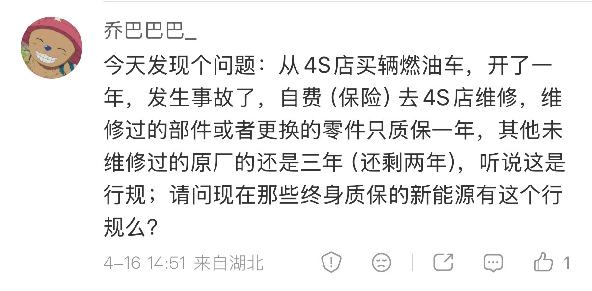 这个问题值得大家关注一下,现在买新车经常会说,整车终身质保。但是你出一次事故,可能终身质保就没了。