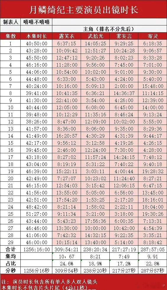 《月鳞绮纪》四位主演出镜时长拉表鞠婧祎、曾舜晞、陈都灵、田嘉瑞
