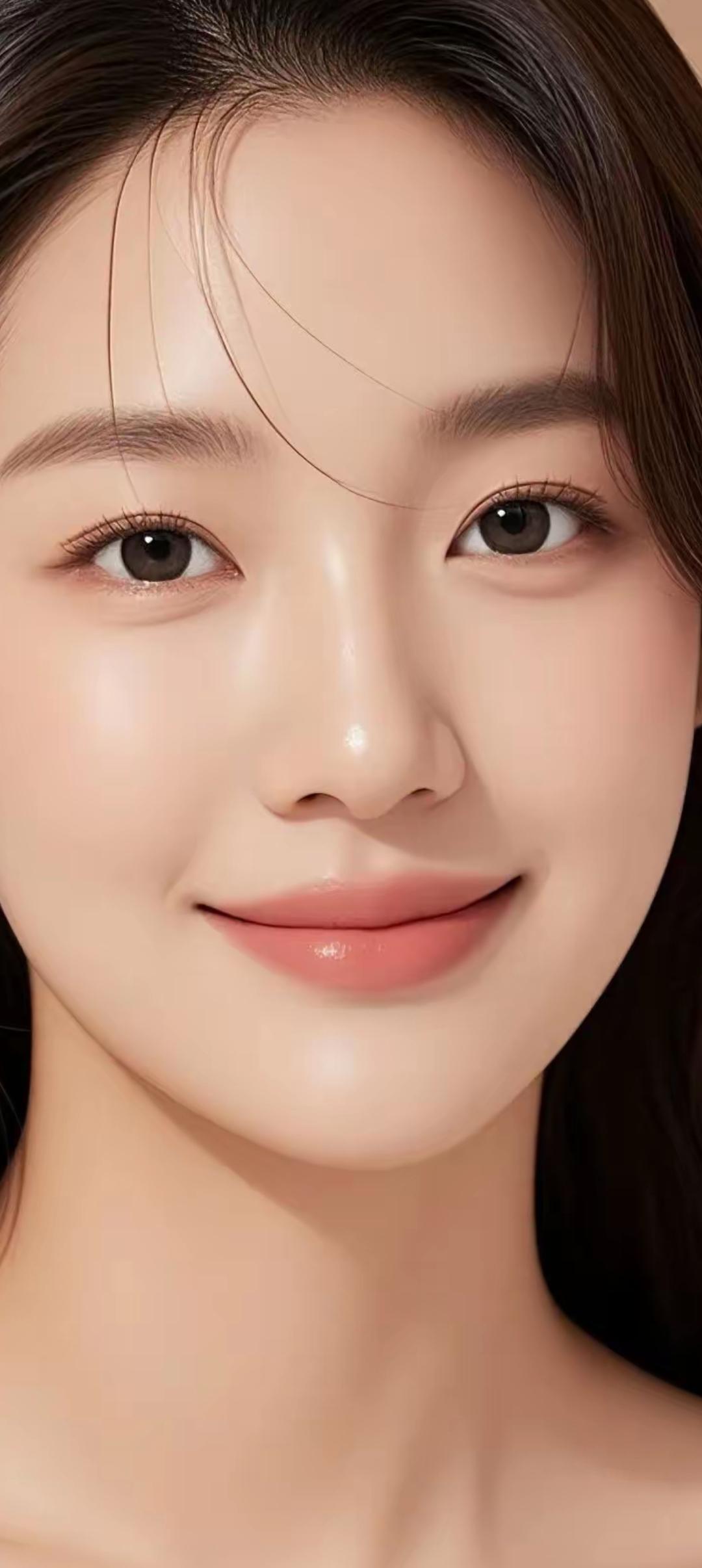 温柔甜美的少女,白皙肌肤,大眼睛,红唇,黑发,清新自然。