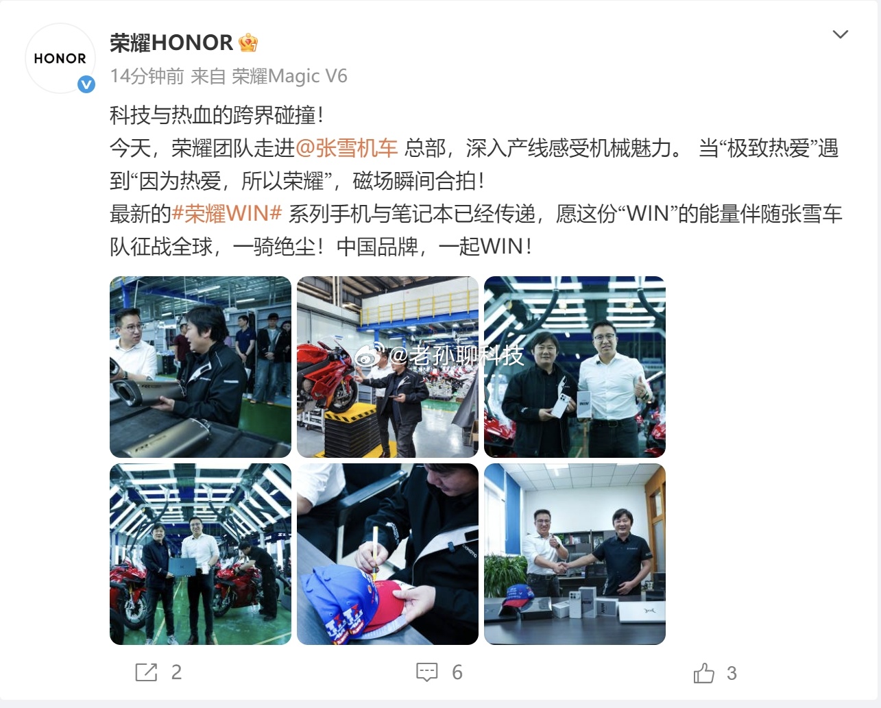 有点意思,荣耀直接向张雪机车队赠送了一套最新的荣耀WIN系列手机,甚至还有荣耀WIN系列游戏本