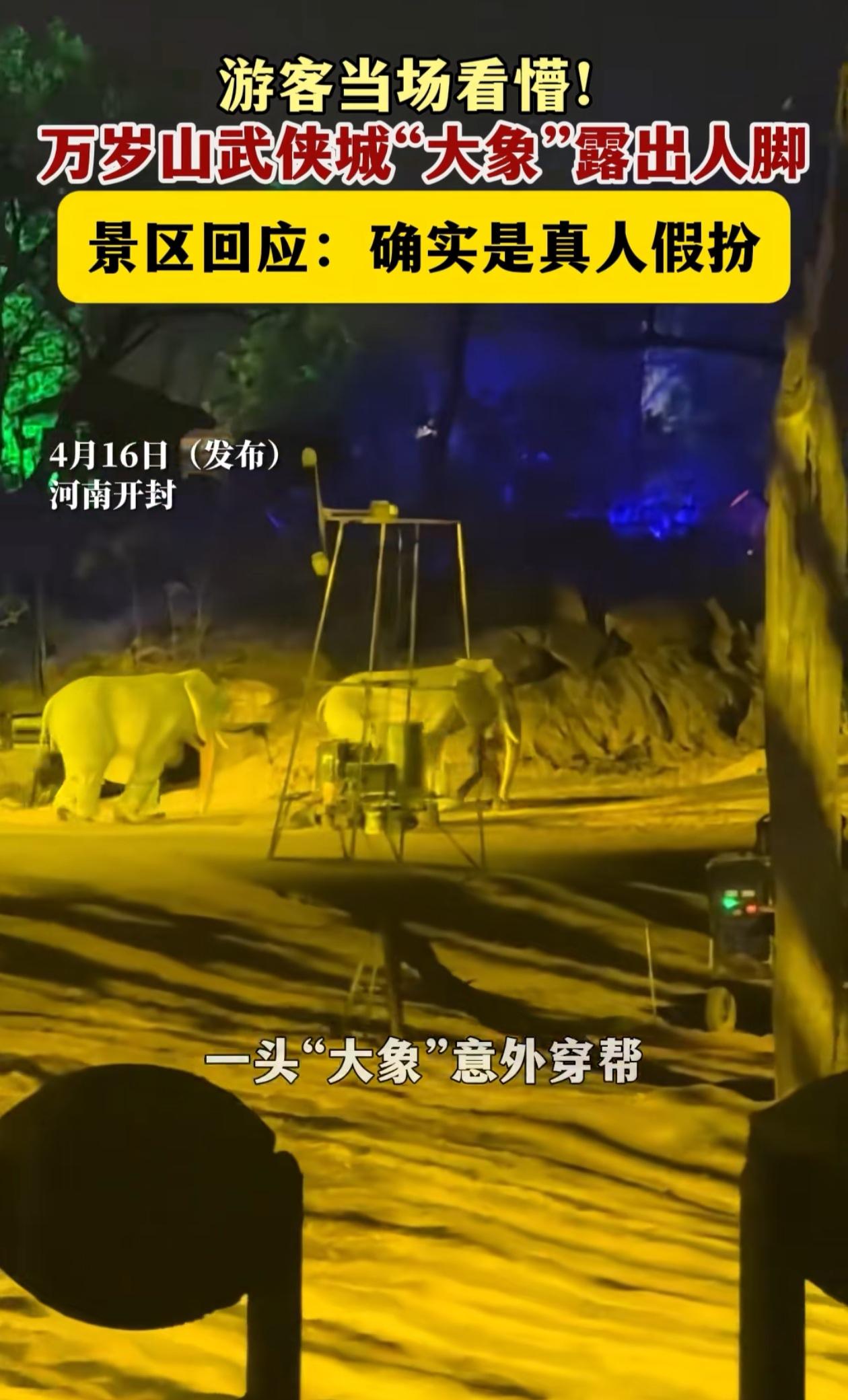 河南应该引进点真大象,毕竟河南的简称叫“豫”,说明河南以前是有大象的。既然和大象有关的省,干嘛不打造大象象文化呢。河南景区想用大象吸引人,居然是用假大象,结果被人发现了,有一条腿象皮没穿好,露出了人脚。