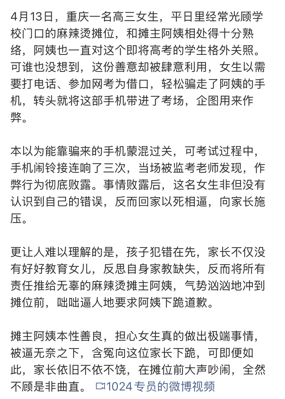 这女生真的刷新我对“白眼狼”的认知!被摊主阿姨一路关照,转头就骗走人家的手机去作弊,被抓包了不认错,还拿死逼家长找阿姨撒气,把别人的善意当垫脚石,三观歪到离谱!