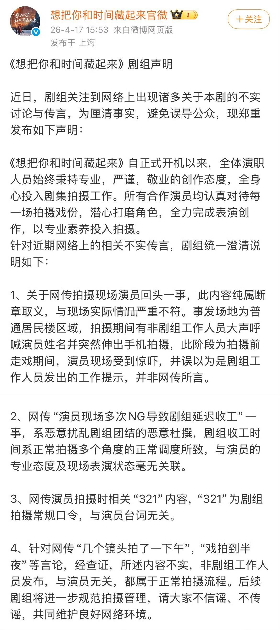 《想把你和时间藏起来》剧组回应了看了澄清声明章若楠属实是wwzz,明明是管理和外界干扰的锅,却硬要她一个人背,太冤了!