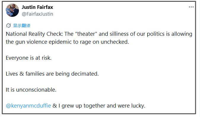 【掉入“斩杀线”?丑闻、债务、酗酒缠身,#美国弗州前副州长枪杀妻子后自杀#】 前弗吉尼亚州副州长贾斯汀·费尔法克斯(Justin Fairfax),曾是风光无限的美国政坛新星,其顺遂的人生却在丑闻、债务与离婚诉讼的重重压力下逐渐走向崩溃。4月16日凌晨,他在家中枪杀妻子后饮弹自尽……