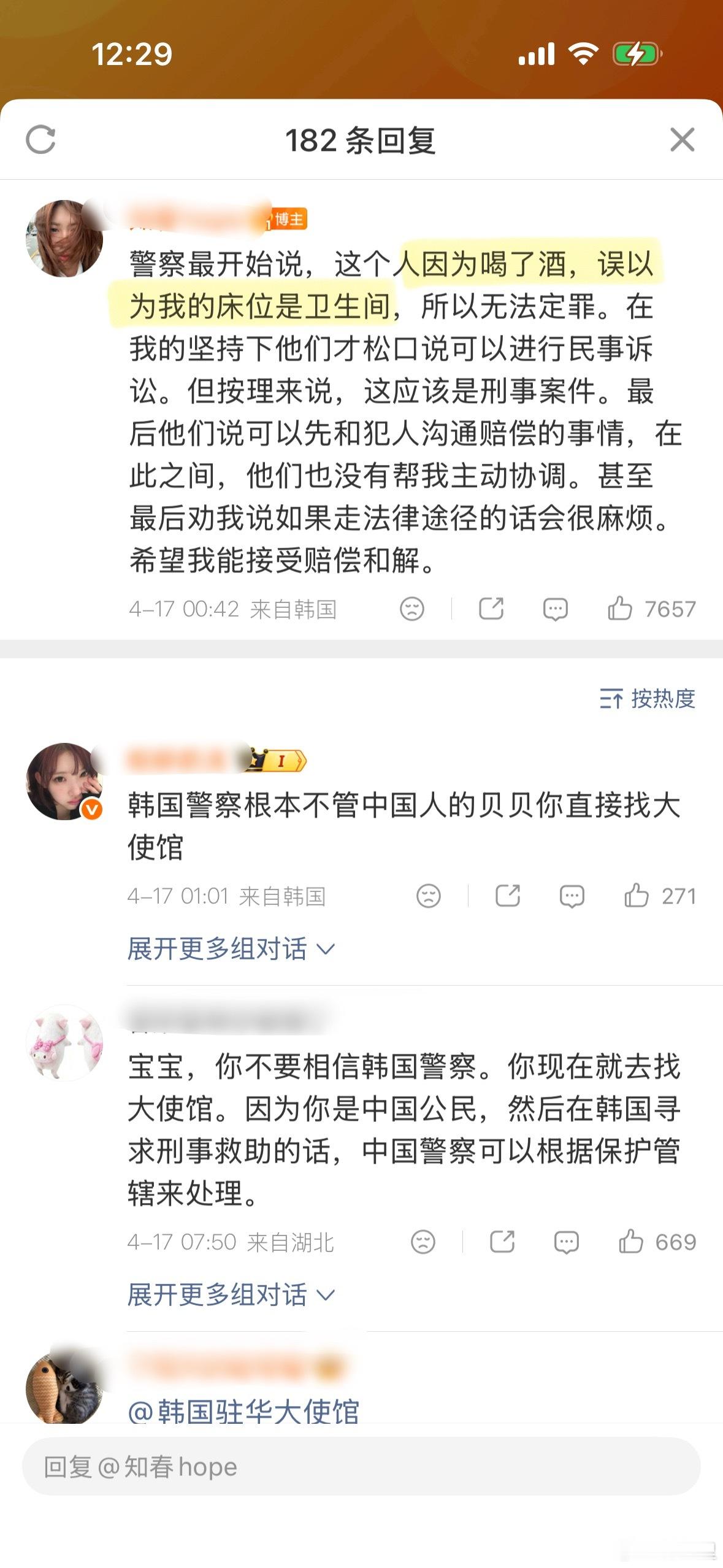 中国女生在韩遭男子性骚扰被劝和解韩国棒子这p话说的,根本就是看是中国的,故意的吧,图1。