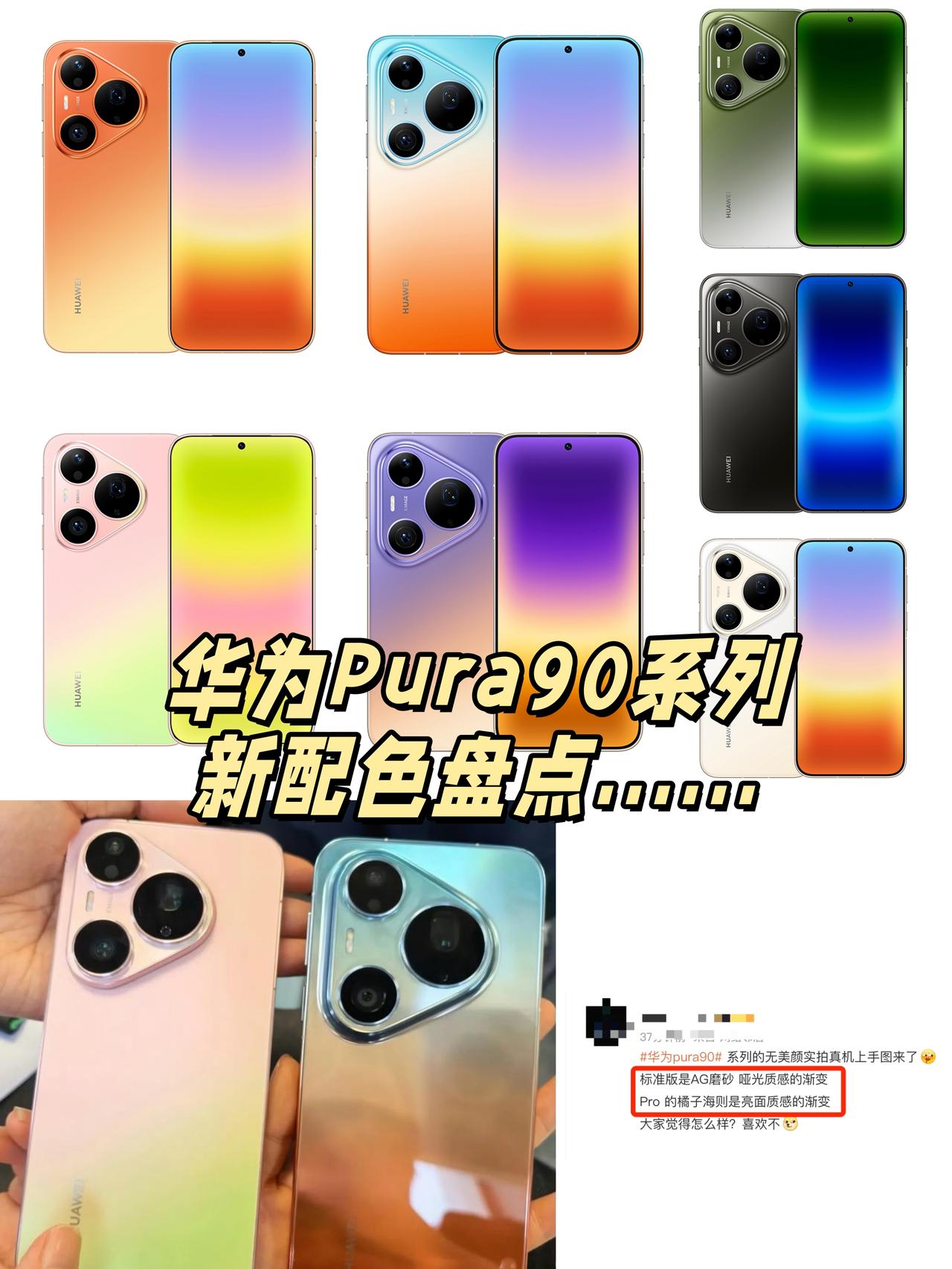 华为Pura90这配色还蛮非主流的😂 看看华为Pura90系列的新配 粉红芭乐、橘子汽水、翡翠湖、椰青白、桑果黑... 每一个渐变配色都好特别 就是各种鲜艳色彩看着有点非主流😆 而且几个渐变色边框细节还不一样 橘子海和翡翠湖看起来中框也做了渐变处理 霞光紫中框是金色,没做渐变 可能是工艺不一样? 🤔听说有磨砂玻璃和亮面玻璃两种材质的 另外华为Pura90系列官宣2亿像素 应该还是二代红枫影像 华为影像这块依然猛 华米OV耀这下应该是全员2亿像素吧❓ - PS:最近华为Pura90的橘子海配色还和橘子海乐队吵上热搜了?这也能说侵权?海边城市都不知道有多少个橘子海了😂