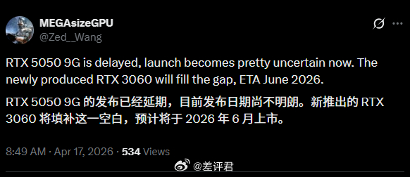 #差评说数码# 感觉 PC DIY 市场是真要凉,昨天看到新闻说 CPU 销量大跌,今天又刷到消息说英伟达 RTX 5050 9GB 延期,3060 12GB 这种旧卡都要复活掏出来卖了。。。