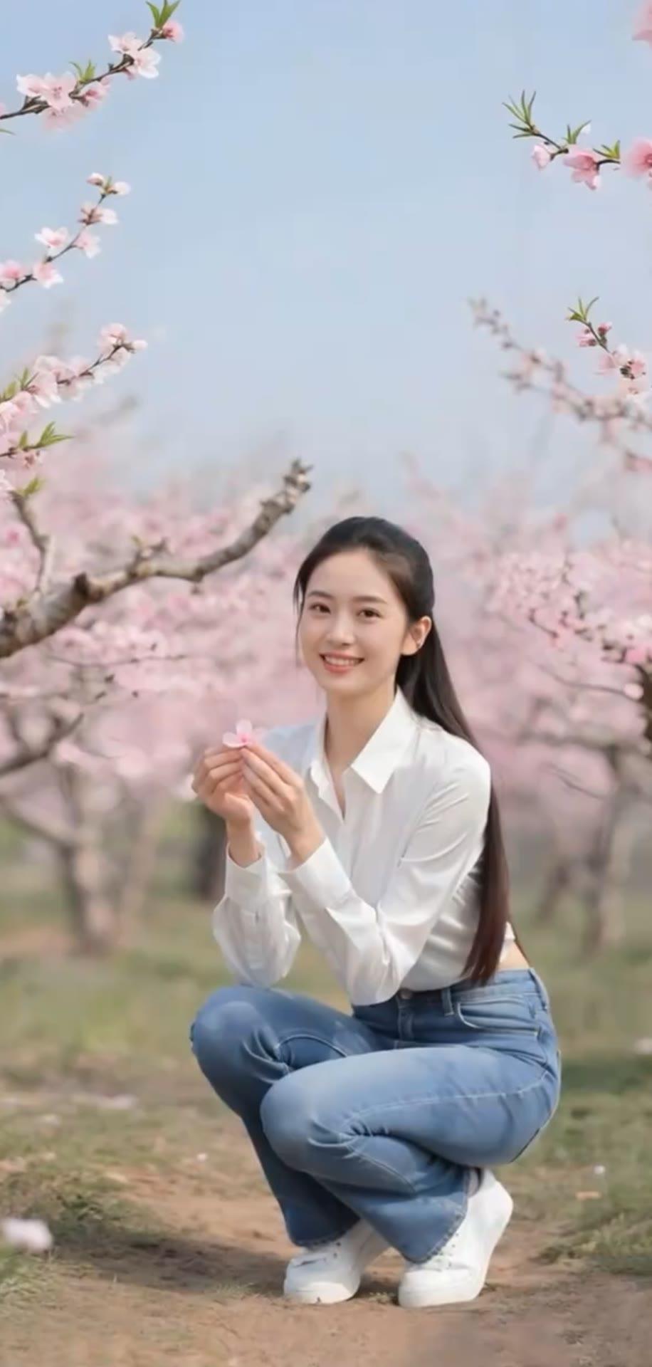 花枝拂面春风里,美人如画意中来。