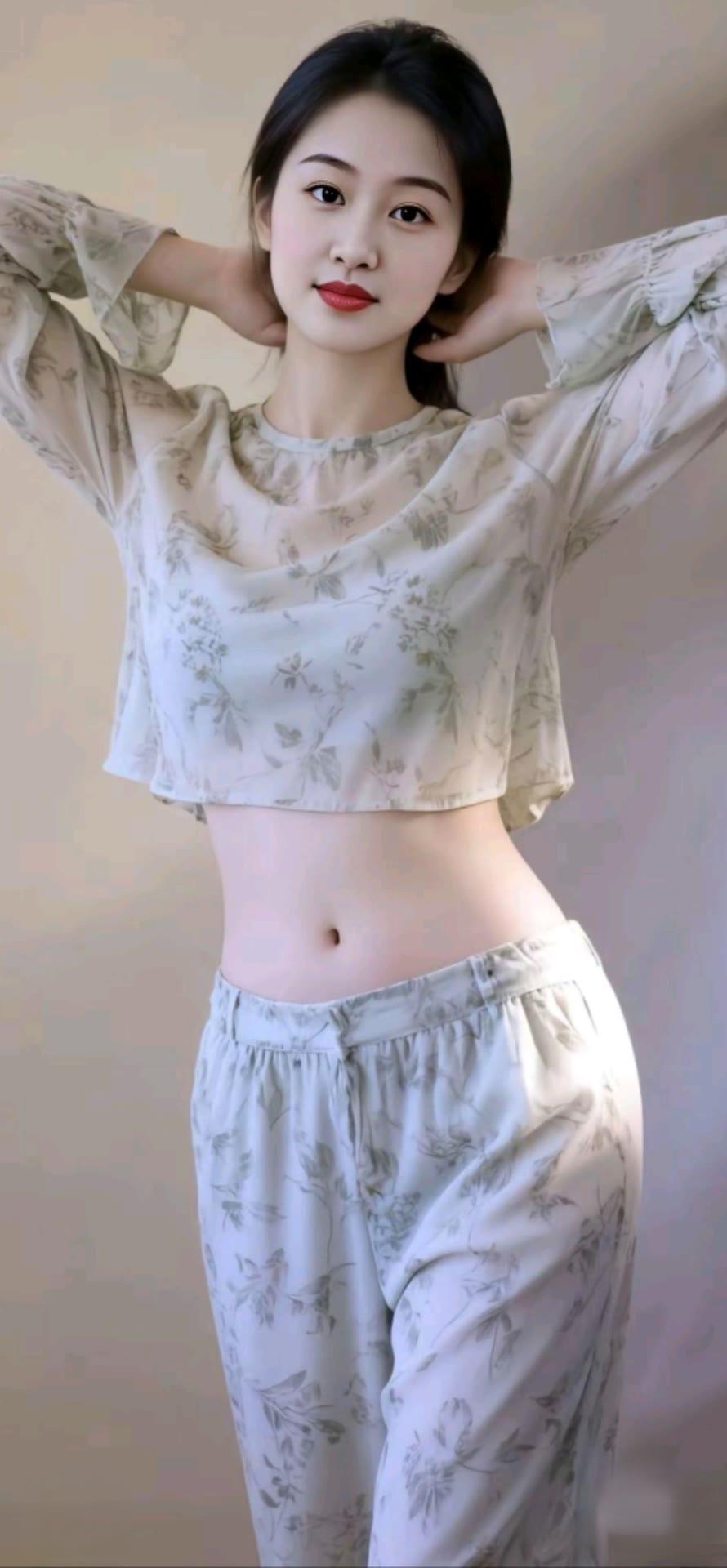 优雅蓝花衬衫,甜美笑容,闪耀珠宝,时尚穿搭
