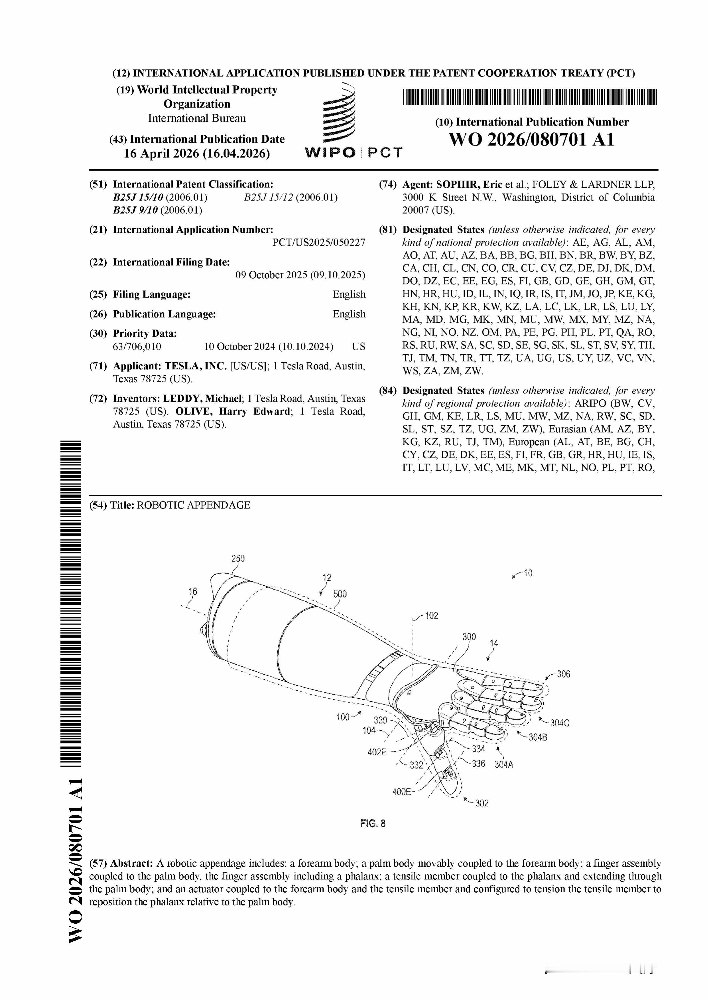 OptimusV3手部国际专利已公开友商有得忙了...又是致敬...又得借鉴