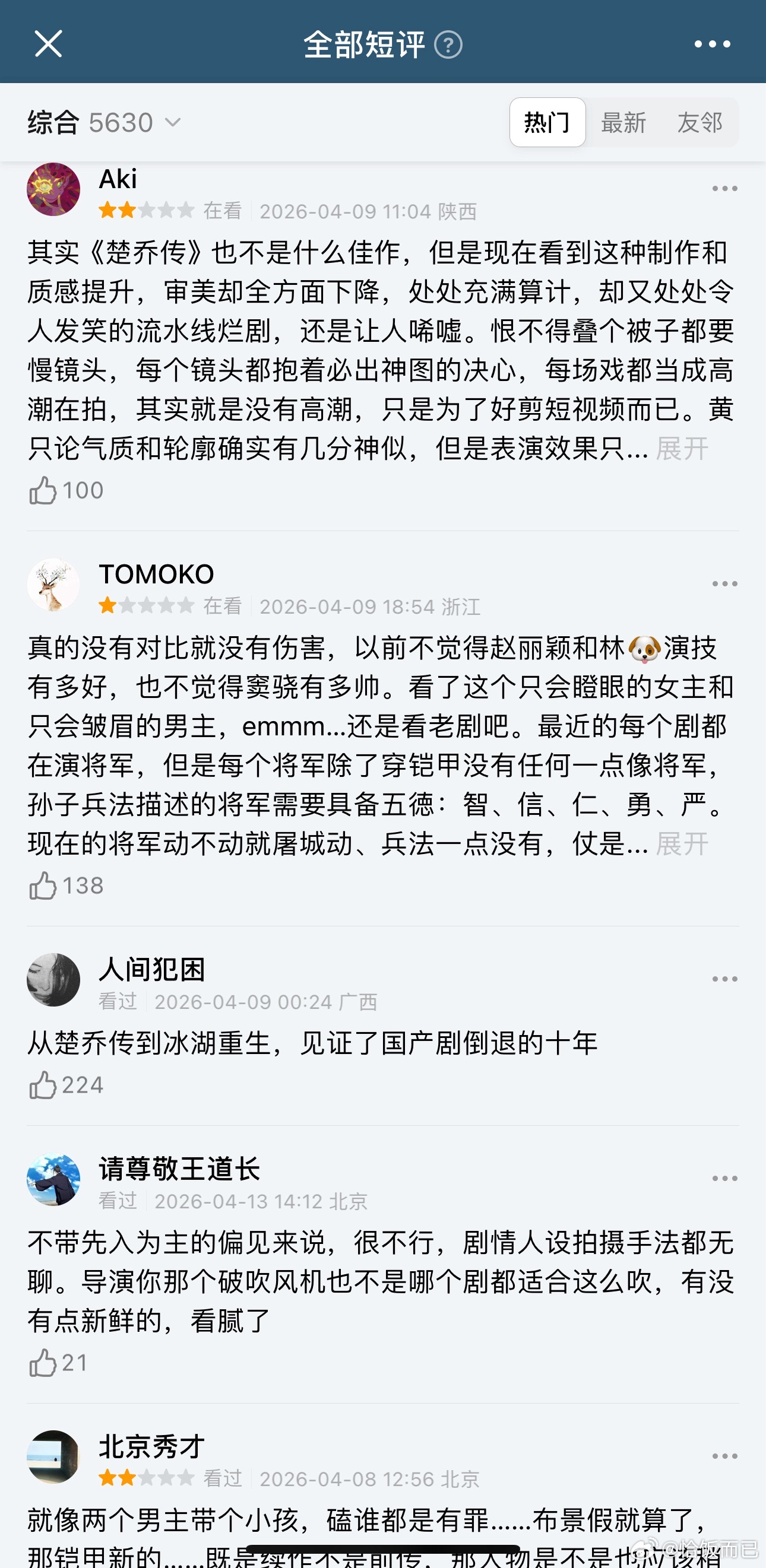 看了一下冰湖重生的短评也都好犀利 “见证了国产剧倒退的十年”“豆包帮我消除对这部剧的记忆”
