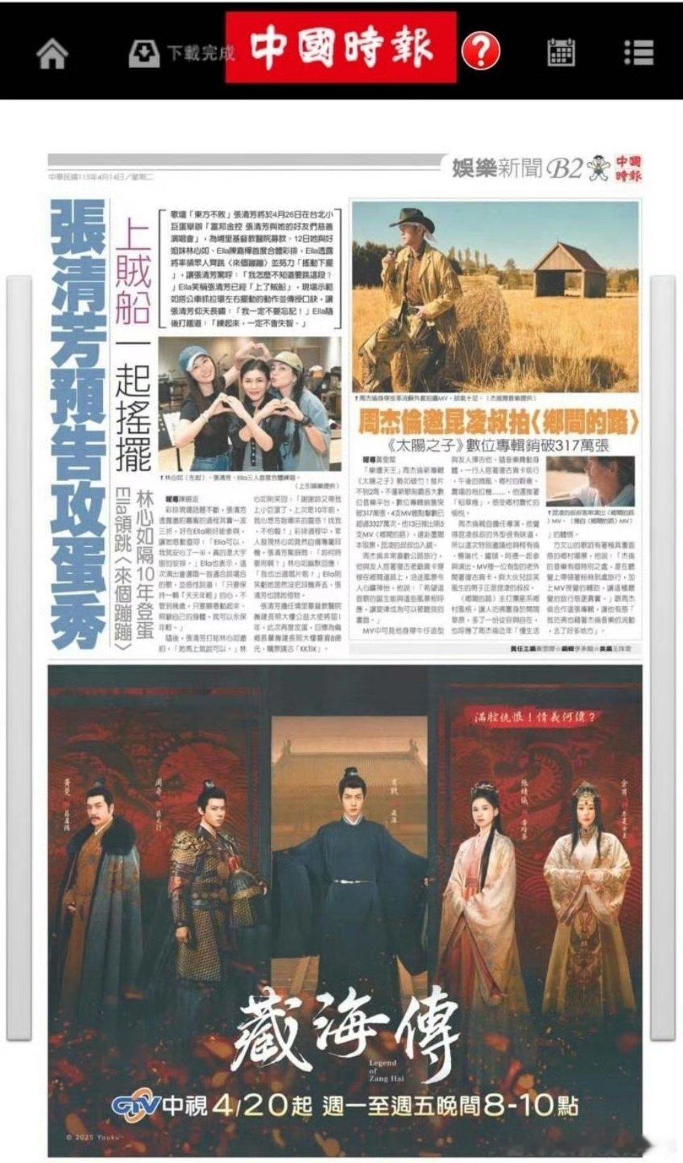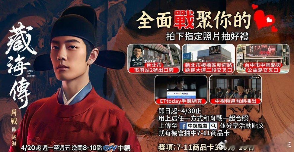 藏海传是绝对的文化输出典范中国台湾地区顶级民营大报《中国时报》超大板块报道肖战《藏海传》的播出信息!还给《藏海传》在各地投了很多大屏,并且拍照打卡还能抽奖这是上新剧的宣发水准啊!