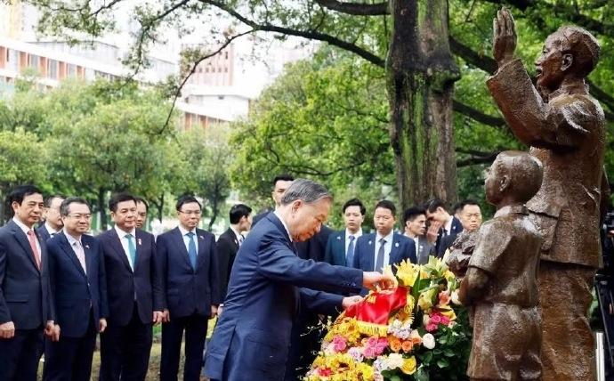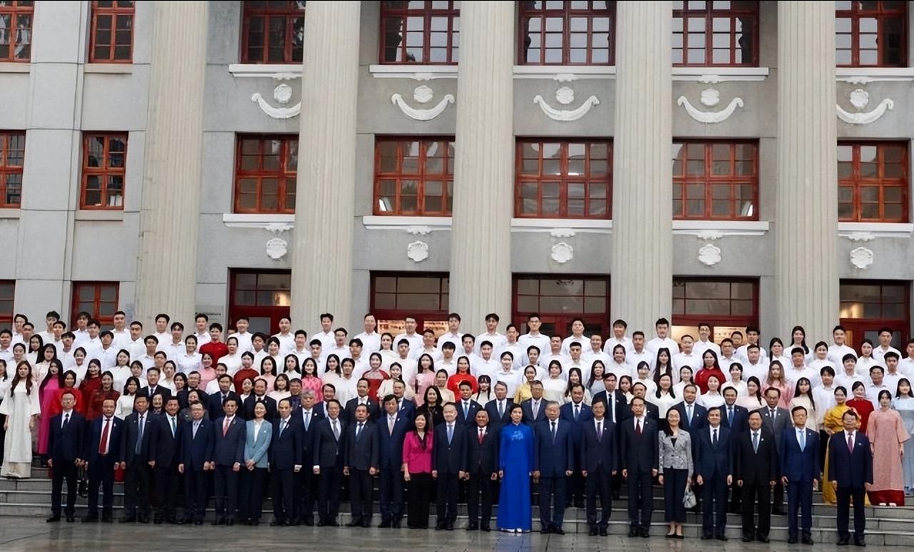 越南夫人吴芳璃现身广西大学和南宁育才学校! 4月17日,是苏林和夫人访华的最后一天,在行程最后一天,苏林和夫人吴芳璃去了广西南宁参观去了。据悉他们昨天坐高铁过去的,抵达广西的时候,越南第一夫人还穿一件橄榄绿的奥黛长裙亮相,引起不少网友的围观。 值得一提的是,在4月17日的上午,越南第一夫人吴芳璃和老公苏林去了广西大学和南宁育才学校参观了。 从曝光的画面我们可以看出,当天越南第一夫人又换了新造型,这次吴芳璃穿的依然是越南奥黛的服饰,只是款式和颜色改变了,这次吴芳璃穿的是湖蓝色的奥黛古朴长裙,和之前的款式差不多,只是颜色非常成熟稳重,要知道蓝色本来就很庄重,可以说这种色彩自带沉稳、高贵的属性,既契合外交场合的正式氛围,同时衬得肤色透亮,兼顾了政治场合的得体性与时尚审美。 心细的网友还发现,越南第一夫人的裙身左胸位置还点缀了同色系的花卉刺绣,以蓝色丝线勾勒出花朵轮廓,给人的感觉就是低调不张扬,却在细节处彰显精致度,也呼应了她早年画家的艺术背景,自带审美巧思。还有就是越南第一夫人盘发的利落感也中和了奥黛的柔美感,增添了几分从容干练的气场,与她的身份气质高度契合。 据悉,越南第一夫人和老公苏林不仅去了南宁育才学校,他们还去了广西大学,苏林还在广西大学发表了讲话,让人惊喜的是,苏林当天穿的也和夫人很匹配,一身浅蓝色的西装非常年轻有精神。 可以说越南第一夫人第一天来北京的时候穿的就是奥黛长裙,这期间她一直穿奥黛参加不同的活动让人大开眼界,而她的气质和魅力也非常适合穿这样的衣服。也同时展现了东方女性的优雅与高级感。