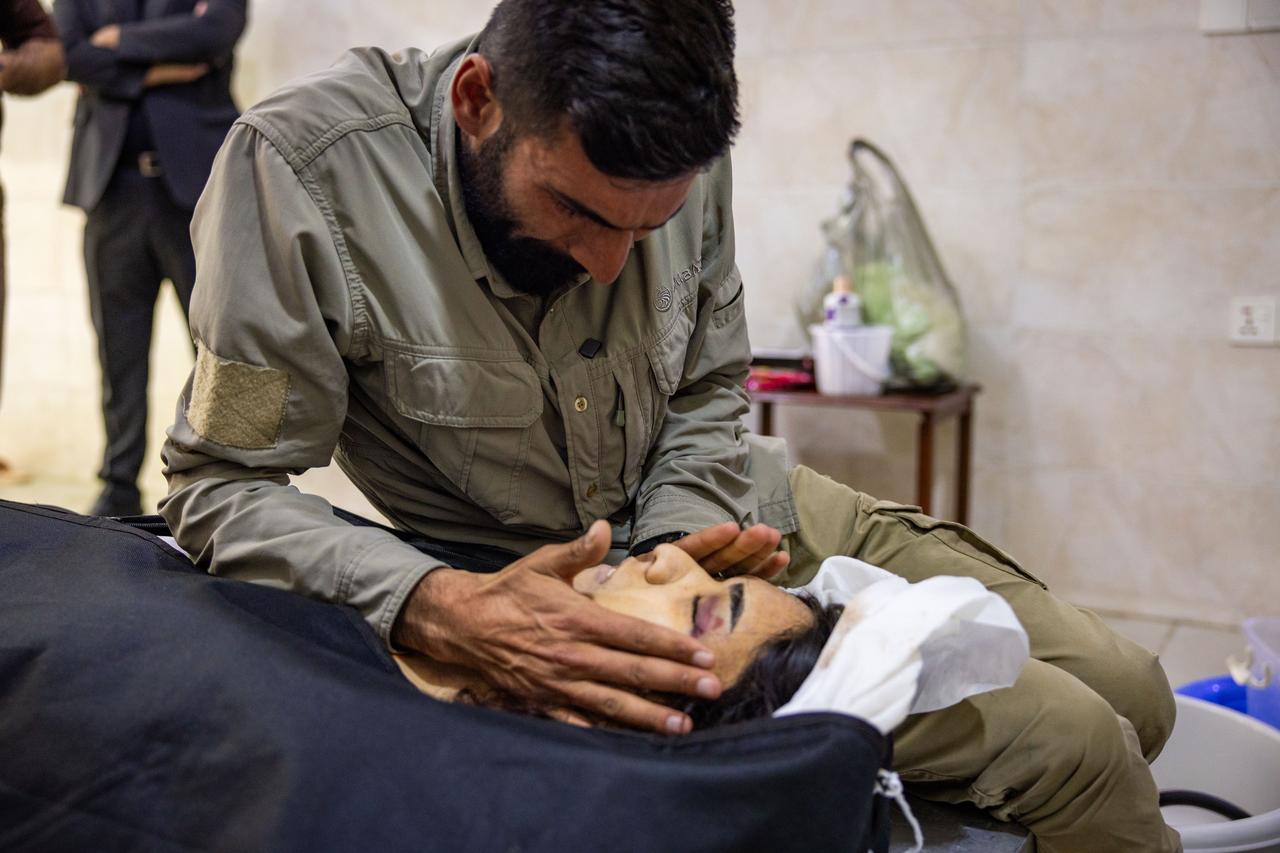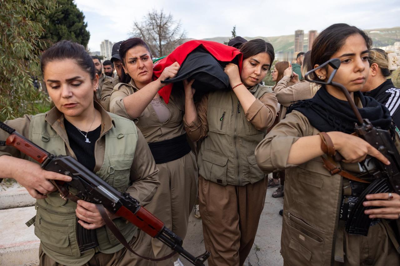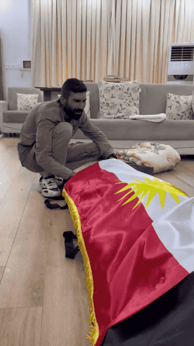 库尔德女战士被伊朗炸死:丈夫痛哭流涕送别,这场悲剧该怪谁?画面里一位留着胡须的年轻男子跪在木地板上,双手轻轻抚摸着裹在库尔德斯坦国旗下的遗体。那面红白绿三色旗帜边缘镶着金色流苏,中央一轮耀眼黄太阳格外醒目,他低头调整旗角,动作缓慢而小心,仿佛怕惊扰了沉睡的人。这份安静的悲伤背后,却是一场早已注定的悲剧。4月14日下午,伊朗无人机突袭了伊拉克库尔德斯坦苏莱曼尼亚省苏尔达什地区的科马拉党营地,当时加扎尔·毛兰和其他几名佩什梅格战士正在阵地,当时加扎尔·毛兰和其他几名佩什梅格战士正在阵地,无人机精准命中后,她身负重伤被紧急送往苏莱曼尼亚医院,却因伤势过重在转院途中不幸离世。自今年2月底伊朗与美以冲突爆发以来,类似针对伊朗库尔德反对派营地的导弹和无人机攻击已超过164起,迄今已有六名佩什梅格战士遇难。这起事件发生在所谓停火协议之后,却再次暴露了伊朗对境外反对势力的持续打压。伊朗用无人机攻击伊拉克库尔德斯坦地区,主要针对的是流亡在那里的伊朗库尔德反对派武装组织,比如科马拉党(科马拉·扎赫马特科尚·库尔德斯坦党)、伊朗库尔德斯坦民主党(PDKI)等。这些组织在伊拉克北部苏莱曼尼亚省和埃尔比勒省设有营地,成员多为佩什梅格战士,他们长期反对伊朗政权,主张库尔德自治或独立。