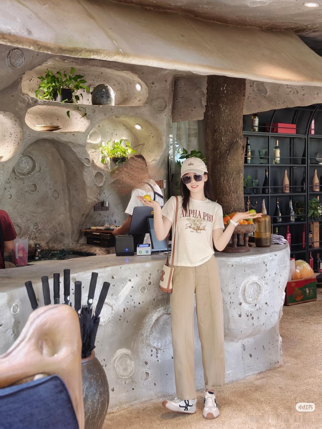 绿树阴中倚栏杆,轻纱薄雾笼烟岚。