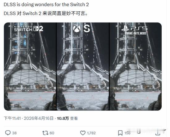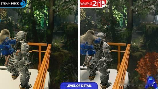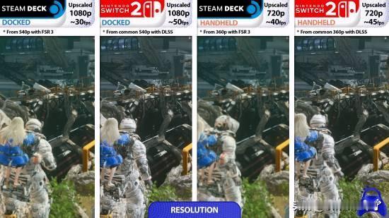 数毛社发布的《识质存在》在Xbox Series S和Switch 2上的画面对比引起玩家感叹:XSS画面太烂了,完全比不上Switch 2这个掌机。本作在 Nintendo Switch 2 与 Steam Deck 上的运行表现。 视频: 实测数据显示,在底座模式下,Steam Deck 使用 FSR 3 技术将 540p 画面缩放至 1080p,帧率勉强维持在 30 FPS 左右。 而 Switch 2 表现则更为强劲,通过 DLSS 技术从 540p 缩放至 1080p,帧率稳定在 50 FPS 左右,流畅度大幅领先。 在手持模式下,双方的差距依然明显。Steam Deck 通过 FSR 3 从 360p 缩放至 720p,帧率约为 40 FPS;Switch 2 则利用 DLSS 在相同分辨率缩放下,跑出了 45 FPS 的成绩。 更重要的是,Steam Deck 在部分复杂场景下会出现明显的闪烁伪影,严重影响视觉体验,而 Switch 2 的画面表现则良好。