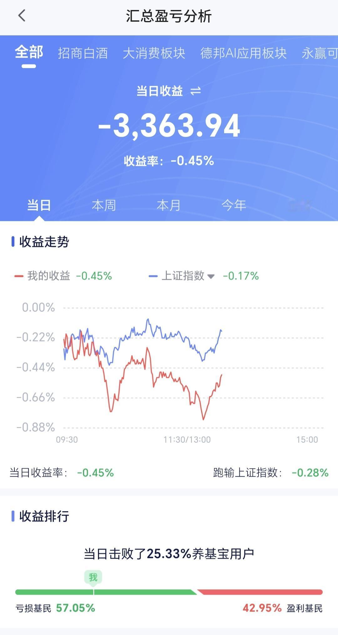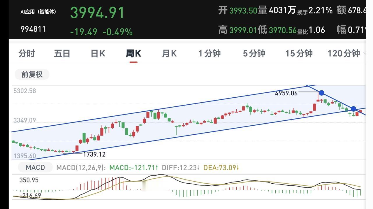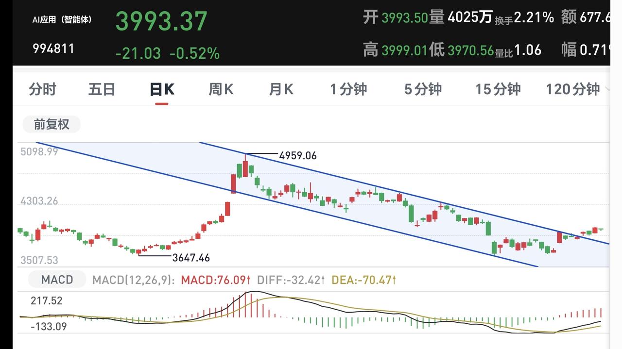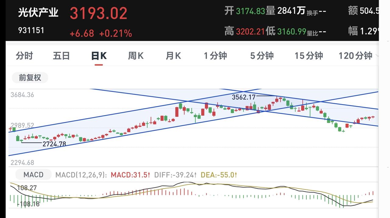 基金:下周将会进行方向的选择 市场下午是小幅度的探底回升,创业板指上涨了1.28%,盘中点位3672点,上证指数下跌了0.15%,盘中点位4049点,震荡的幅度还是很小。 整个股票市场,上涨1893家,下跌3517家,两市累计成交17791亿,相比于上一个交易日同期放量了848亿,主力资金净流出513亿,这说明下午开盘以后成交量是萎缩的,主力资金净流出的金额是加大的。 主力资金净流入最多的三个板块是:5G板块,电子板块,半导体板块,主力资金净流出最多的三个板块是:蓝筹策略板块,esg板块,国企板块。 持有的基金中,盘中估值盈利金额最大的三个板块是:5G板块,创业板指,芯片半导体板块,估值亏损金额最大的三个板块是:创新药板块,白酒板块,大消费板块,估值整体上涨了3363元。 整个基金市场,上涨10073家,下跌9232家,上涨幅度超过5%的108家,没有下跌幅度超过5%的基金。 图9是今天板块的上涨排行榜,上涨幅度最大的三个板块是:Cpo板块,固态电池板块,通信板块,图10是今天板块的下跌排行榜,下跌幅度最大的三个板块是:创新药板块,医药板块,医疗板块,图11是今天基金的加仓和减仓人数,加仓8955947人,减仓3227406人,加仓人数超过了减仓人数。 1:下午黄色线还是在蓝色线下方,虽然两条线之间的敞口不大,但毕竟是黄色线在上,这也是今天下午能够探底回升的主要原因。 2:现在五天线位置是4029点,从早盘到现在为止的震荡都是在这个点位之上,只要不跌破五天线,下午的盘面都不要过分担心。 3:下午开盘以后成交量萎缩,主力资金净流出金额加大,这是高位放量滞涨的现象,这是有资金在出逃的嫌疑。 4:AI应用板块星期二的时候上涨突破了日线级别下跌通道的上轨线。最近的几个交易日都是在这个下跌通道的上方震荡,已经是处于有效突破当中。星期二突破的时候就应该考虑要不要进场。 AI应用板块周线级别处于上涨趋势破位中,最近几个交易日的上涨都没有能够重新回到原来的上涨通道内,所以,星期二突破日线级别下跌通道上轨线的时候,如果你本来的仓位在五成以上,你就可以考虑不要进场,毕竟周线级别还没有重新回到上涨趋势中。 5:光伏板块日线级别处于下跌通道中,今天的上涨并没有能够突破日线级别下跌通道的上轨线,今天的上涨并没有改变日线级别的下跌趋势,短线持有的人继续注意风险。 光伏板块周线级别处于上涨趋势破位中,最近的上涨并没有能够重新回到原来的上涨通道内,长线持有的人继续注意风险。 6:固态电池板块上周五的时候上涨重新回到了原来的日线级别上涨通道内,这个板块日线级别又恢复到了上涨趋势中,在重新回到日线级别上涨通道内的时候,就应该考虑要不要进场。 固态电池板块也回到了周线级别上涨通道内,只要能够保持在这个上涨通道内,只要不有效跌破这个上涨通道的下轨线,长线持有的人都可以继续持有。 市场现在黄色线向上与蓝色线拉开了距离,这样的情况下,不排除后面会指数翻红,但即使是这样,并没有改变资金出逃的嫌疑,只是把方向的选择留给了下周,现在还看不出方向,也就是方向不明。 今天究竟应该怎么办?我会在评论区留言。 大家帮忙评论点赞,转发和分享,谢谢大家的支持。