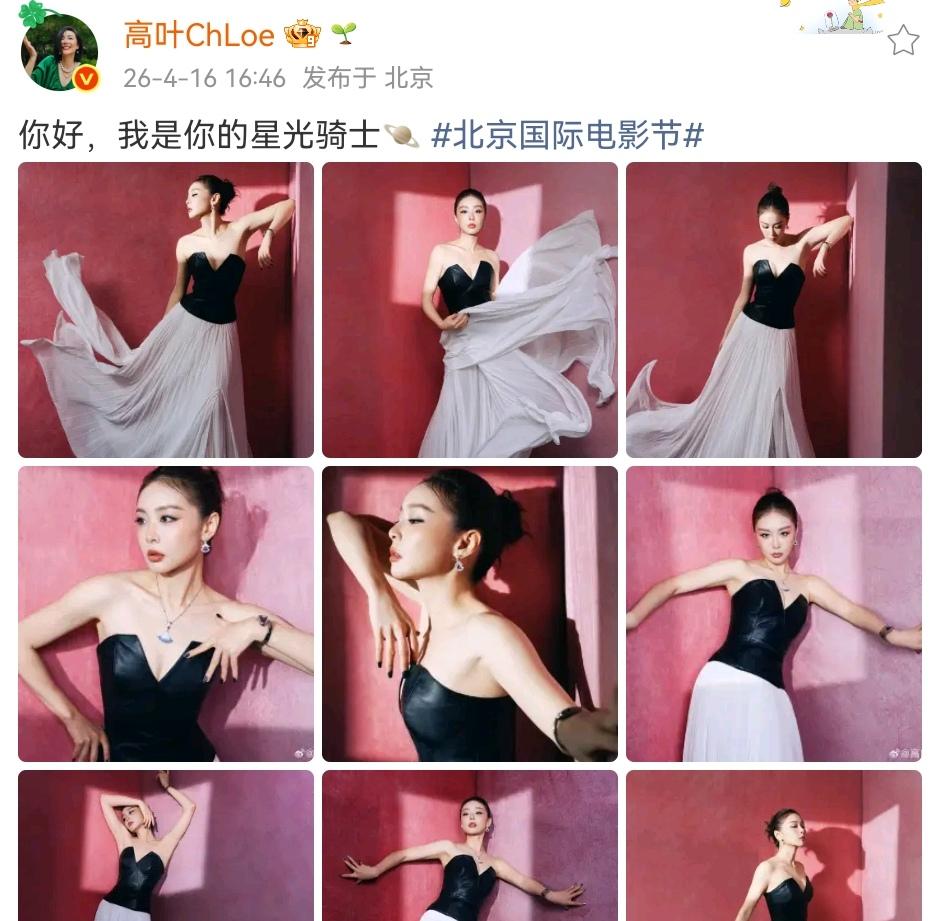 黑+白 最经典的颜色组合 想说不爱那是不可能的 看,高叶 一袭黑白撞色长裙上身 美出了新境界 越看越耐人寻味 黑色与性感交织着美 白色与优雅融合在一起 整体看起来 魅力无敌 这样的大表嫂高叶 谁会不爱哟