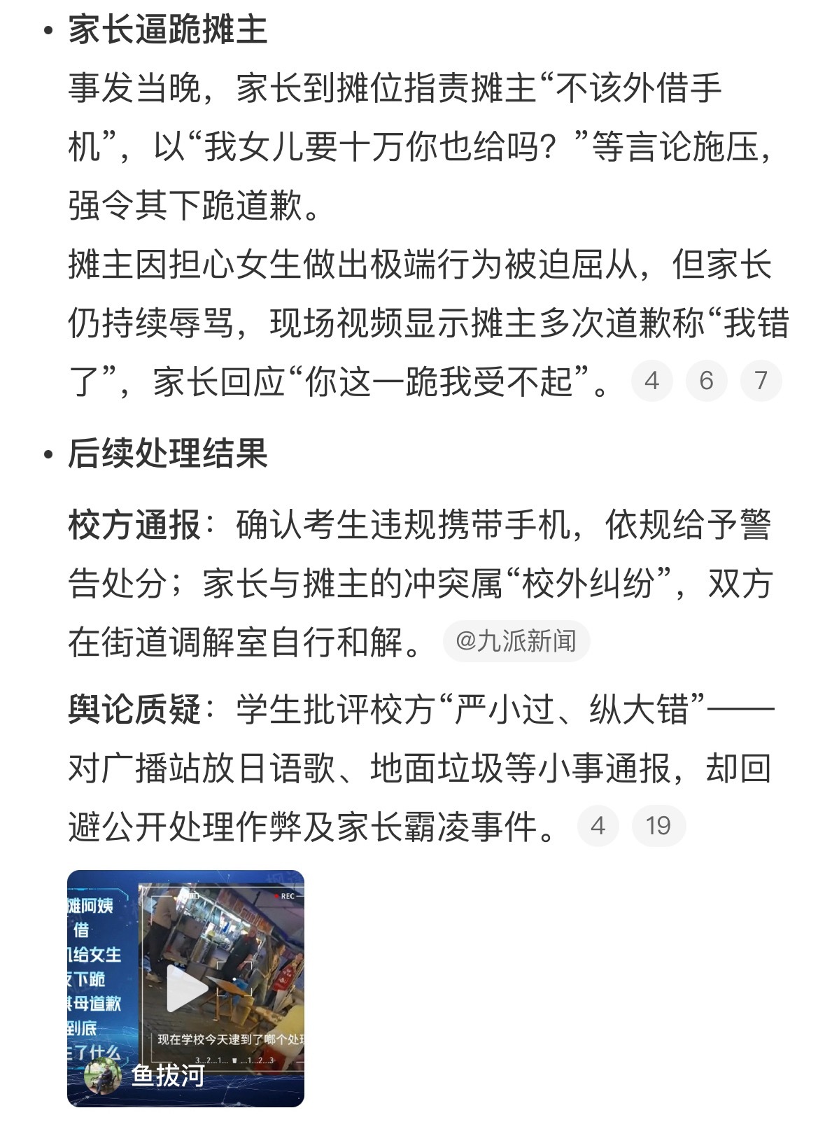 摊主因借给学生手机被家长逼到下跪不是一家人,不进一家门。这一家子就没个讲理的人。遇到这种,认栽吧。