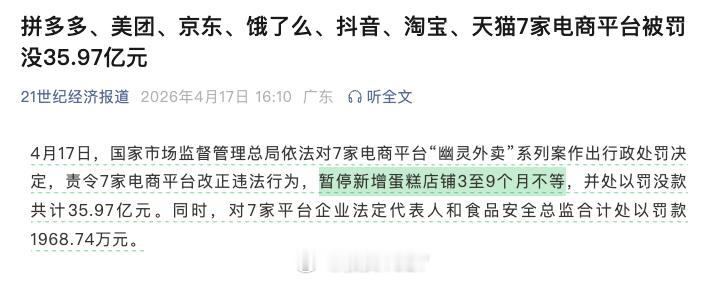 蛋糕出什么事了7家电商平台被罚35.97亿