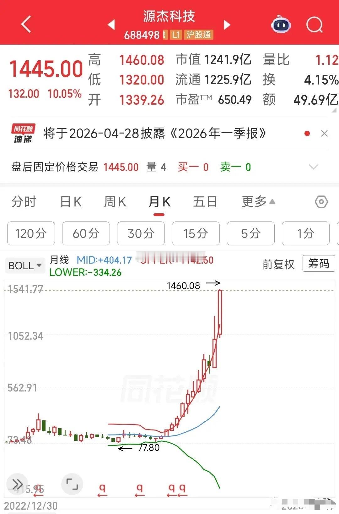算力火不火,看看这只个股就知道了,已经是新的股王了今天源杰科技再次涨停,收盘价已经达到了1445元,超过了茅台,成为最贵个股,原来是寒武纪篡位,现在又冒出来了源杰科技。