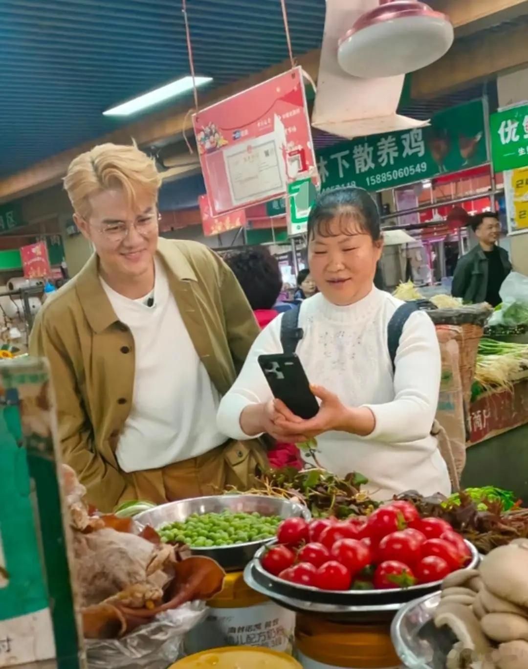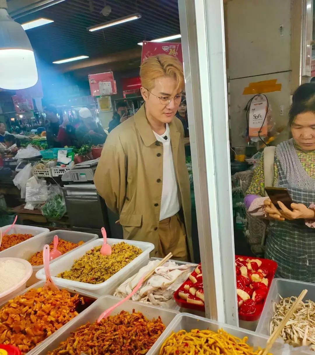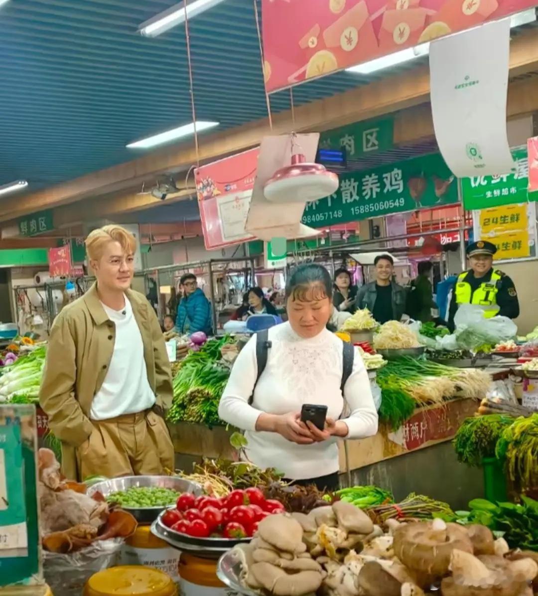 47岁吴克群现身贵州遵义菜市场买菜,他打扮时尚又不失个性,他穿着大衣外套,他染了一头黄头发,他一边买菜一边和路人阿姨们交谈,看起来好亲切,好接地气也好低调,完全没有大牌明星的架子。
