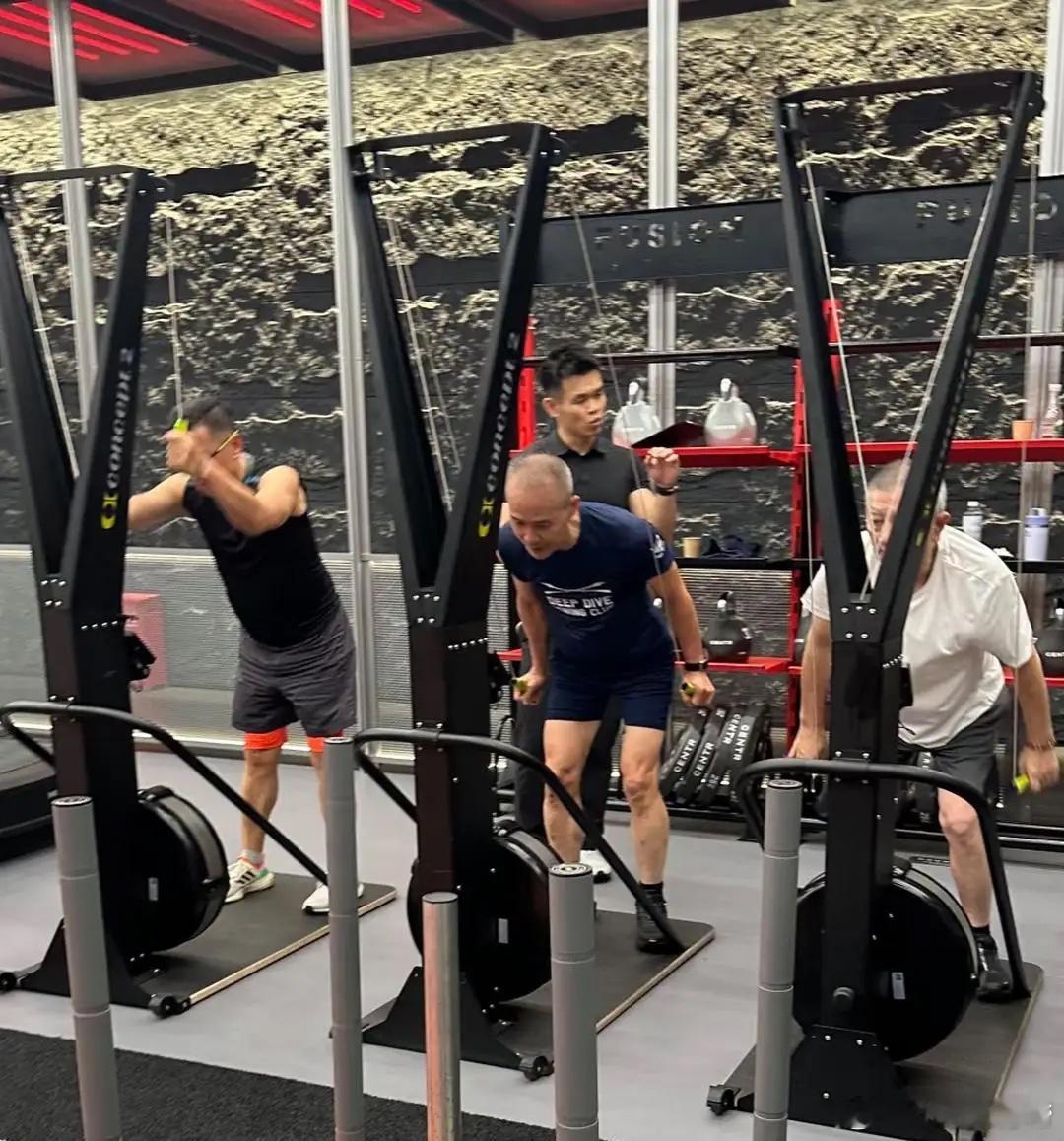 75岁王石现身北京一家健身房锻炼身体被偶遇,他在教练耐心的指导下,他尝试做各种高难度动作,累得气喘吁吁,他身穿一套运动服,身材偏瘦!