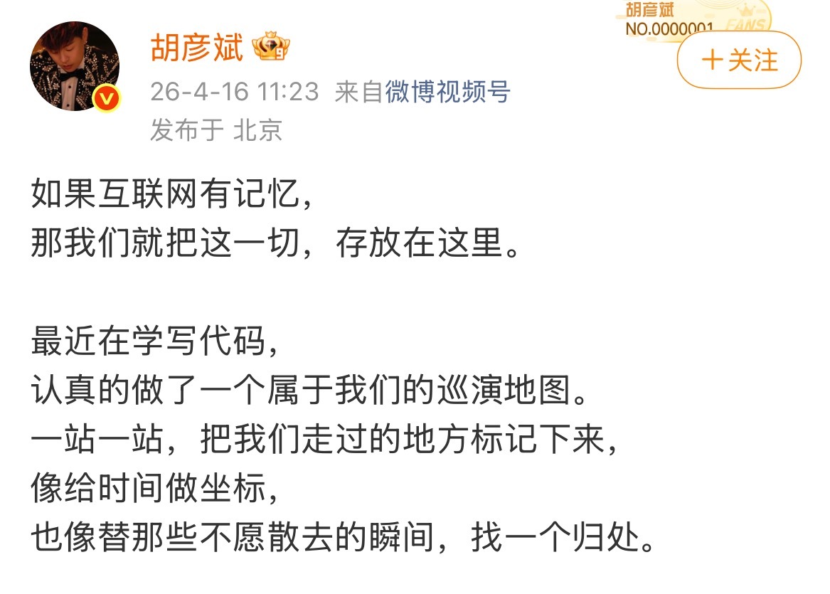 网友首都机场偶遇胡彦斌写代码太优秀了胡老师,竟然自学编程,感觉好厉害他说要做一个属于他和歌迷的巡演地图,把一起走过的地方标记下来,真的好浪漫!!胡彦斌