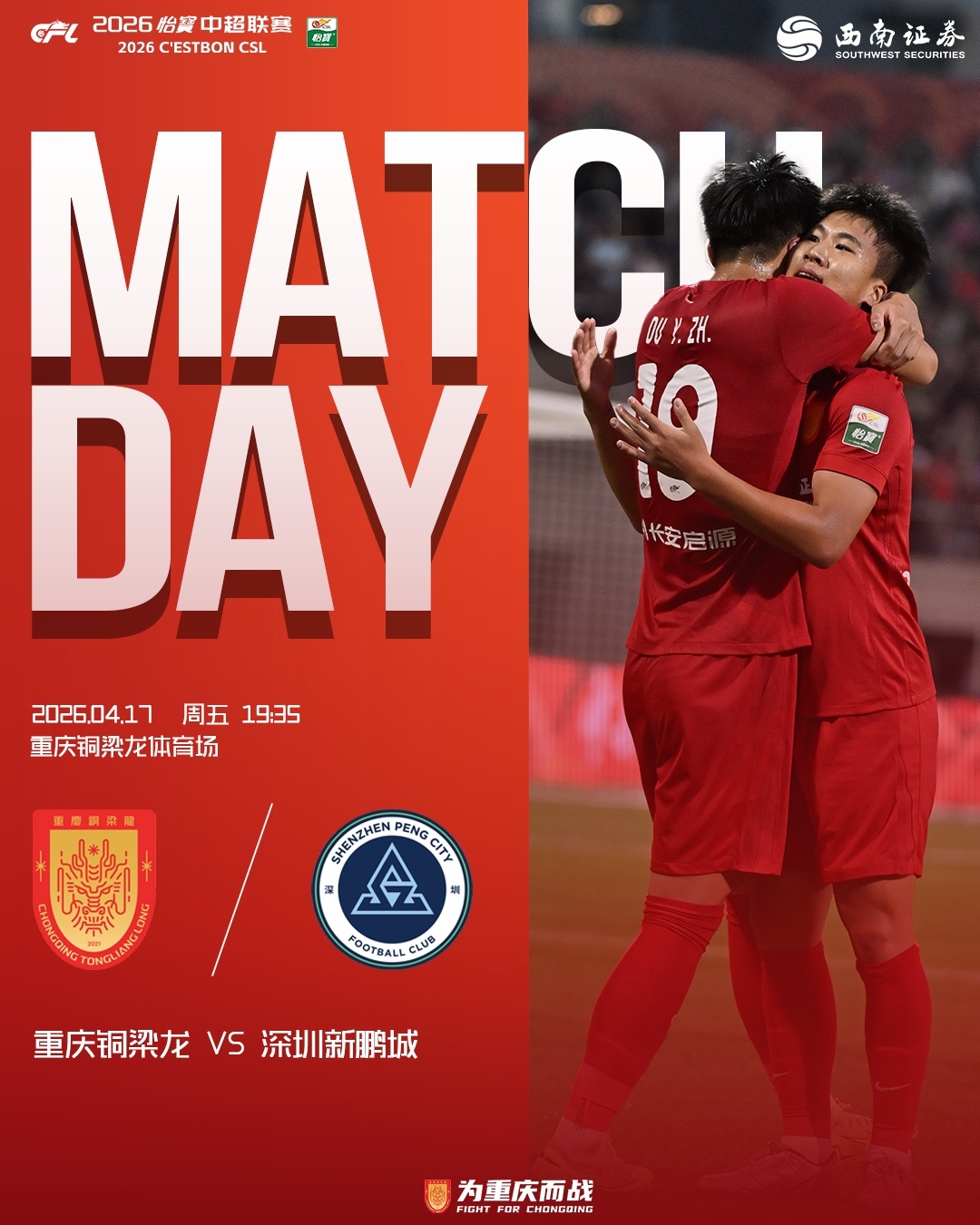今晚19:35,中超第6轮,重庆铜梁龙vs深圳新鹏城。赛前首发阵容已经公布。