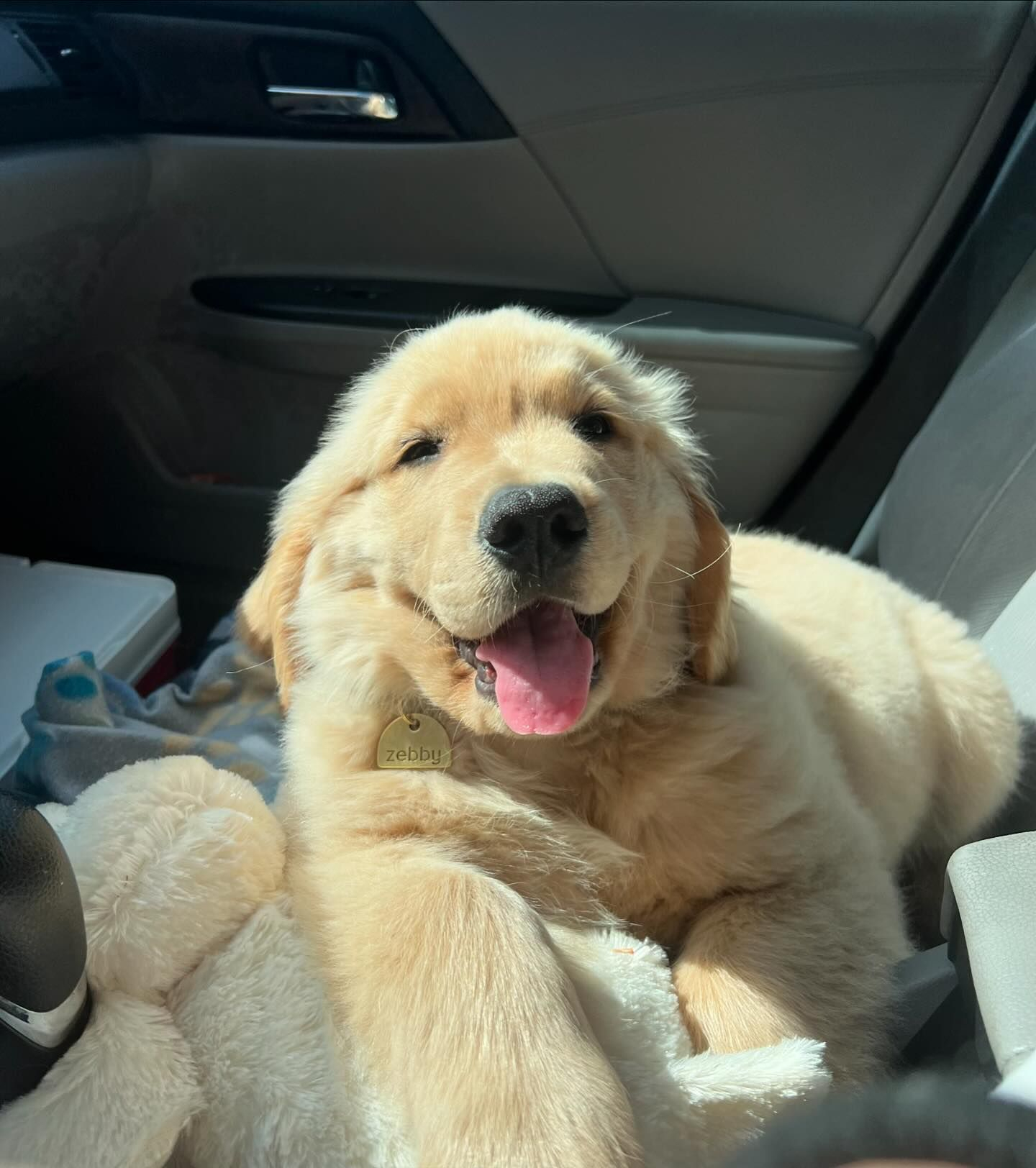 早起正在伸懒腰的小金毛