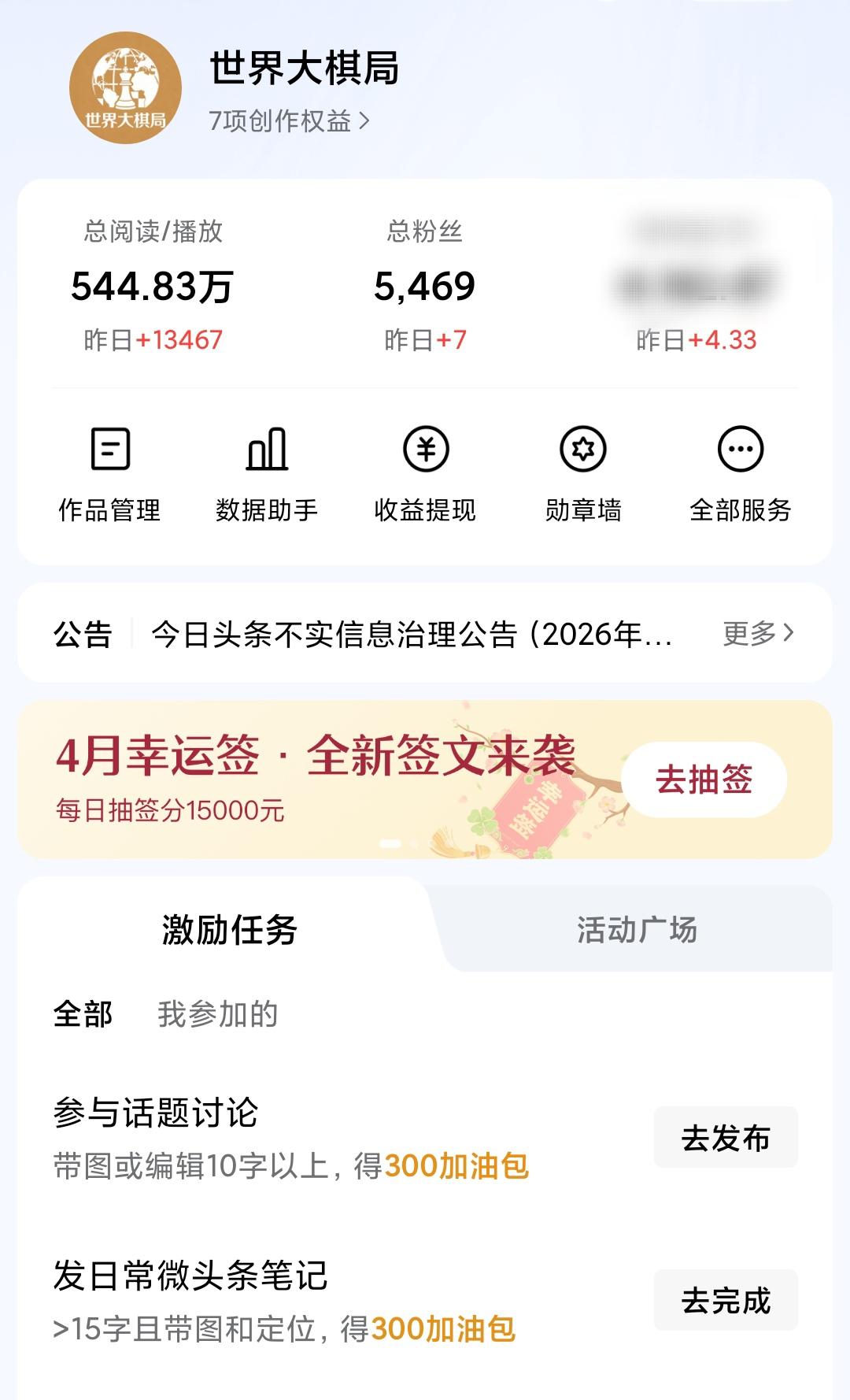 1.3万阅读只赚4.33元,我终于看清了头条创作的真相。 昨天后台数据出来,看着13467的新增阅读,再看收益栏里的4.33元,我盯着屏幕愣了好久。 1万多阅读,按很多人说的“万次单价”来算,怎么也该有个十几块吧?可现实就这么骨感,4块3毛3,连一杯奶茶都买不到,这就是头条创作者最真实的日常。 很多人觉得,阅读量上去了,收益自然就水涨船高。可只有真正做过的人才懂,头条的收益,从来不是单看阅读量的。粉丝粘性、完读率、互动率、广告质量,每一项都在悄悄影响单价。我这1.3万阅读里,不少是路人随手划开的“秒进秒出”,没看完、没点赞、没评论,数据看着好看,却撑不起收益。 也不是没羡慕过那些一篇十万阅读、收益过千的同行。可转头想想,人家要么是深耕多年的大号,粉丝基数和互动率摆在那;要么是踩中了流量风口,单篇内容的广告价值本身就高。而我这种普通创作者,没有捷径可走,只能靠一篇篇内容慢慢养号,慢慢把账号权重做起来。 4.33元,说少,确实少得可怜;可说它没用,也不全是。这13467次点击,是平台给的流量曝光,是读者给的一次关注机会。我知道,只要继续把内容做扎实,把完读率、互动率提上去,单价总会慢慢涨起来。 做头条,从来不是靠一篇爆文就能一劳永逸的。就像这544万总阅读,也是无数个4块3毛3,一点点攒出来的。今天的4.33元,不是打击,而是提醒我:别盯着数字焦虑,沉下心打磨内容,把每一次阅读都变成有效互动,未来的收益,才会给你想要的回应。