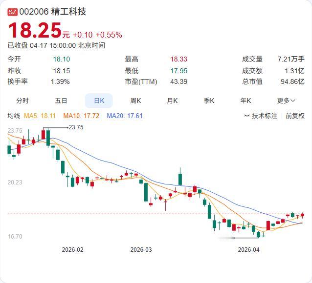 精工科技2025年报正式出炉:营收16.93亿微降2.07%,净利1.86亿增长26.24%! 4月17日晚间,公司披露年报,归母净利润较上年同期1.47亿元增长26.24%,此前业绩预告给出的区间为2亿-2.5亿(同比增长36%-70%),最终实际净利润落在预告下限,低于市场预期。公司拟每10股派发现金红利2元(含税)。而2024年年报曾每10股派1.5元,分红力度进一步提升。 公司正从碳纤维装备制造商向“装备+材料”综合方案提供商加速转型! 2025年期间,公司核心产业碳纤维装备的市场拓展成果良好,预计全年碳纤维装备产品销售收入同比增长60%以上,带动整体业绩提升。更关键的是,公司2025年12月已公告拟投资4.26亿元建设“精工复材智能制造基地项目”,项目建成后将形成人形机器人碳纤维部件6000套、无人机碳纤维桨叶16万件等生产能力,预计年产值约4.81亿元、年净利润约1.12亿元。2025年Q1公司毛利率达到33.14%,创下2019年以来新高水平,盈利能力持续改善。 当碳纤维装备龙头切入人形机器人、低空经济两大万亿级赛道,“装备+材料”双轮驱动格局成型! 项目建成后,公司将从碳纤维装备制造商进一步延伸至复合材料制品领域,形成碳纤维复合新材料产品生态。虽然一季度营收下滑、费用率上升带来短期阵痛,但4.26亿投资叠加人形机器人碳纤维部件产能布局,精工科技正站在新一轮成长的起点。连续两年提升分红力度,叠加新材料产能释放,市场给的估值逻辑正在被重写!