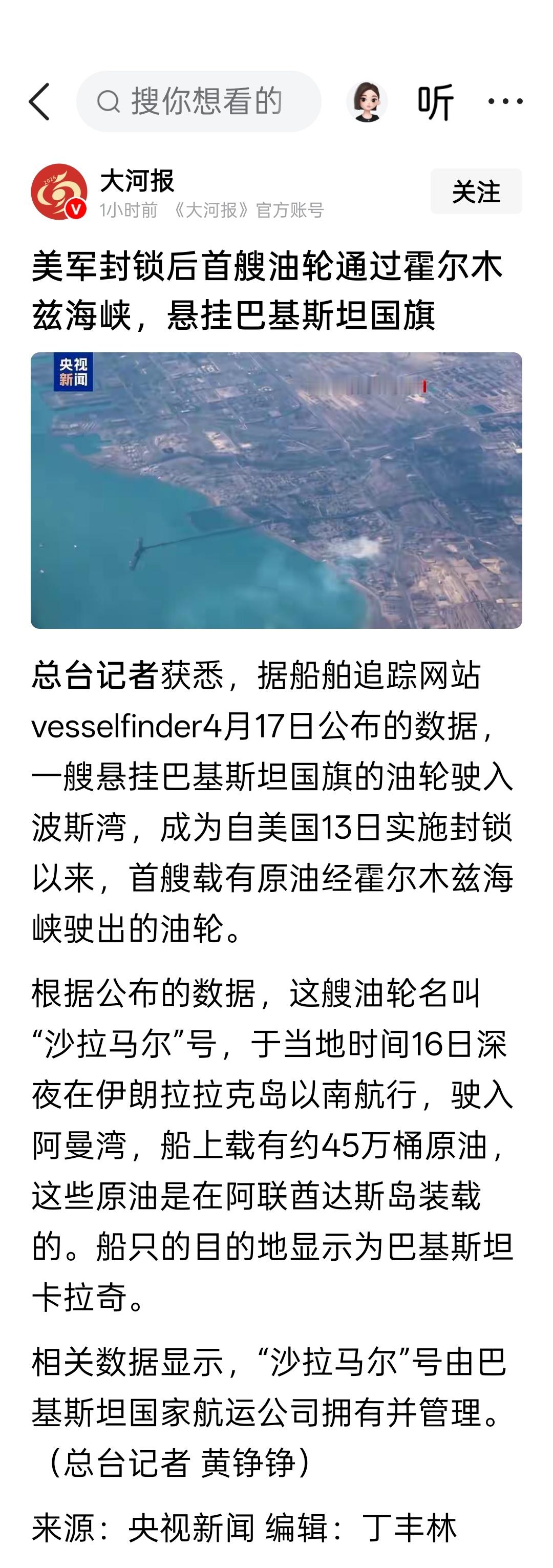 美军封锁后首艘油轮通过霍尔木兹海峡,悬挂巴基斯坦国旗
