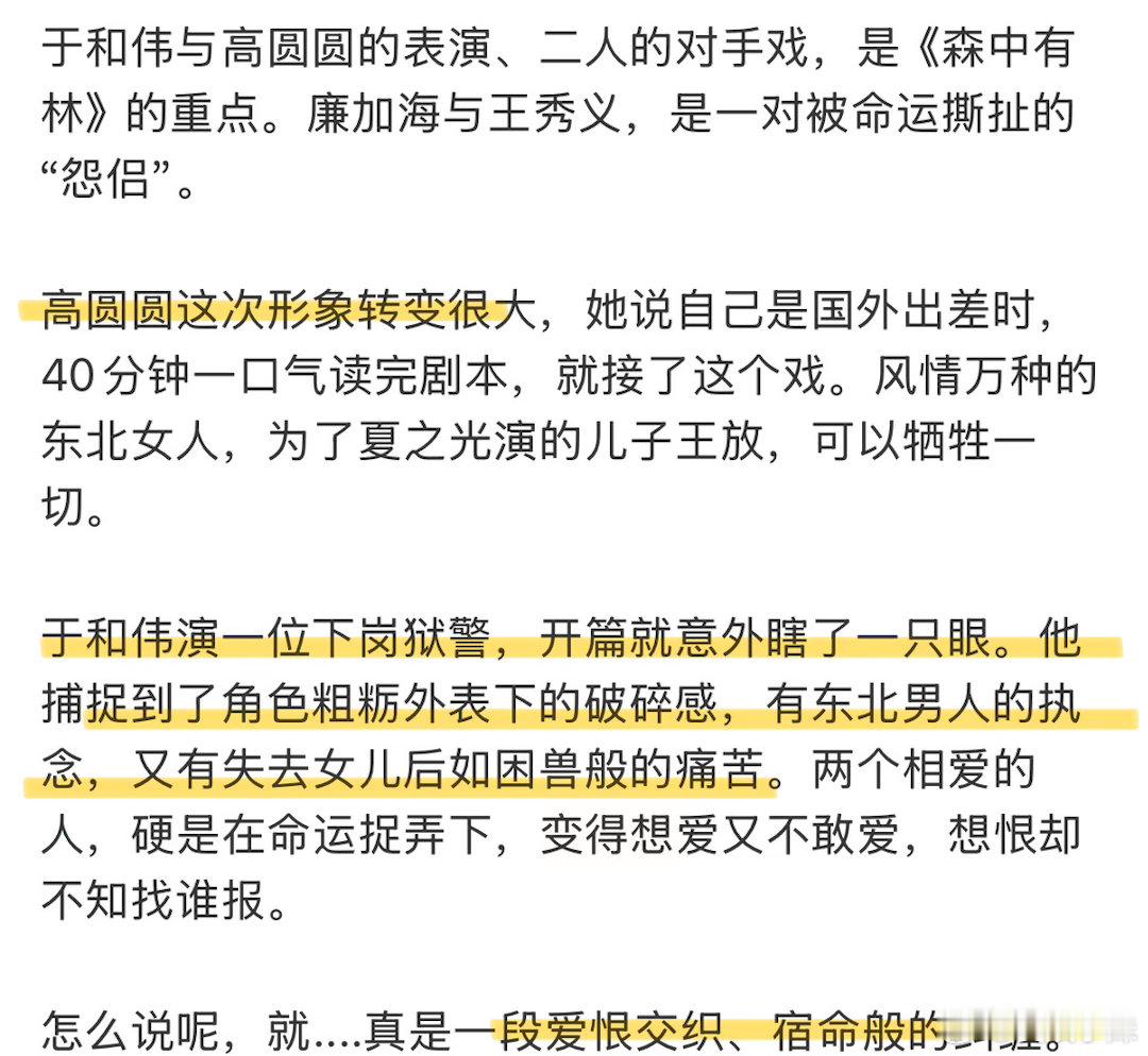 森中有林首波口碑《森中有林》首波好评刷屏!作者亲导最懂内核,四十年恩怨、复仇与宿命层层纠缠。于和伟眼神藏尽破碎,高圆圆风情又狠绝,韩庚张天爱纯爱动人。生猛新鲜、文艺锋利,年度黑马犯罪片。