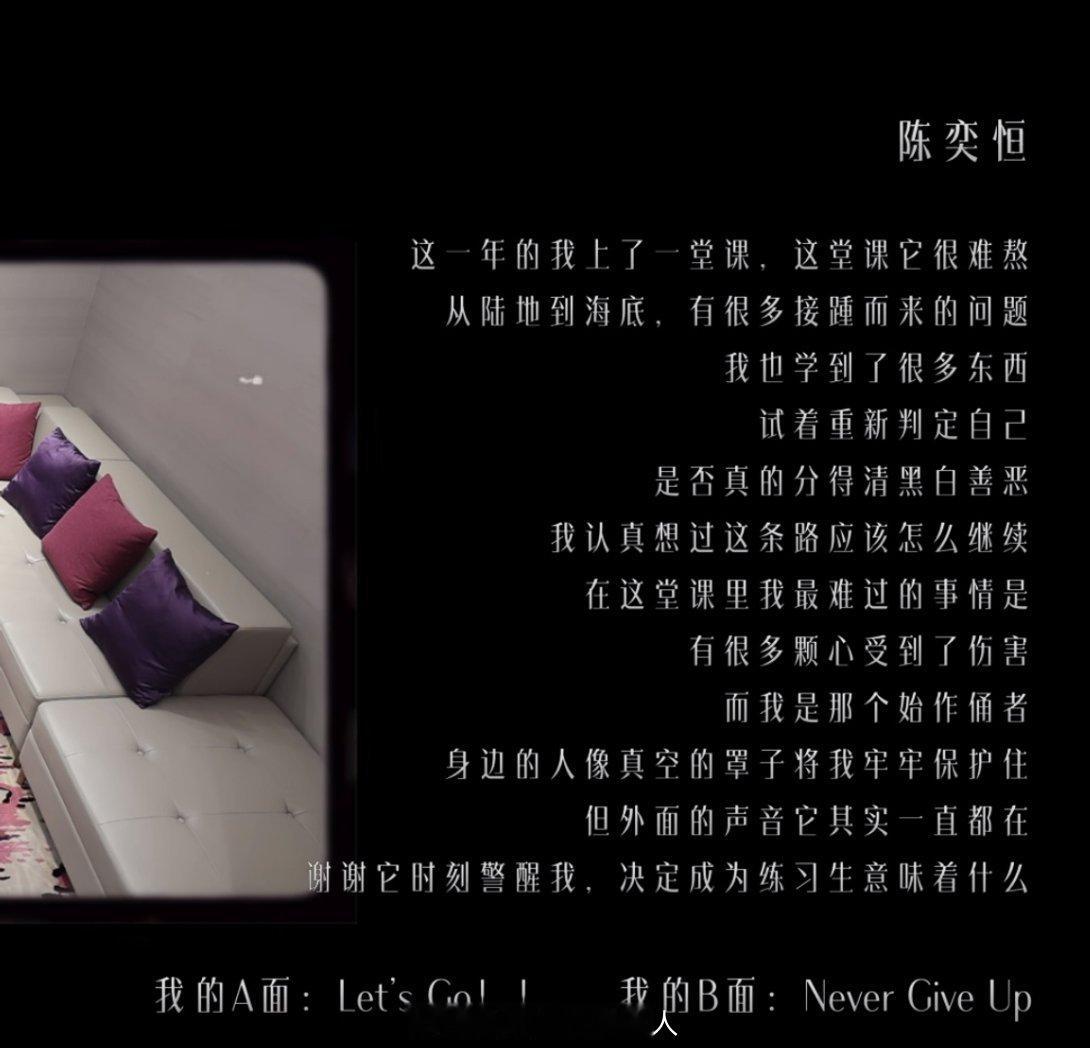 千言万语只想说一句陈奕恒谢谢你没放弃,你很好!还是p3那句话吧“开开心心做自己”