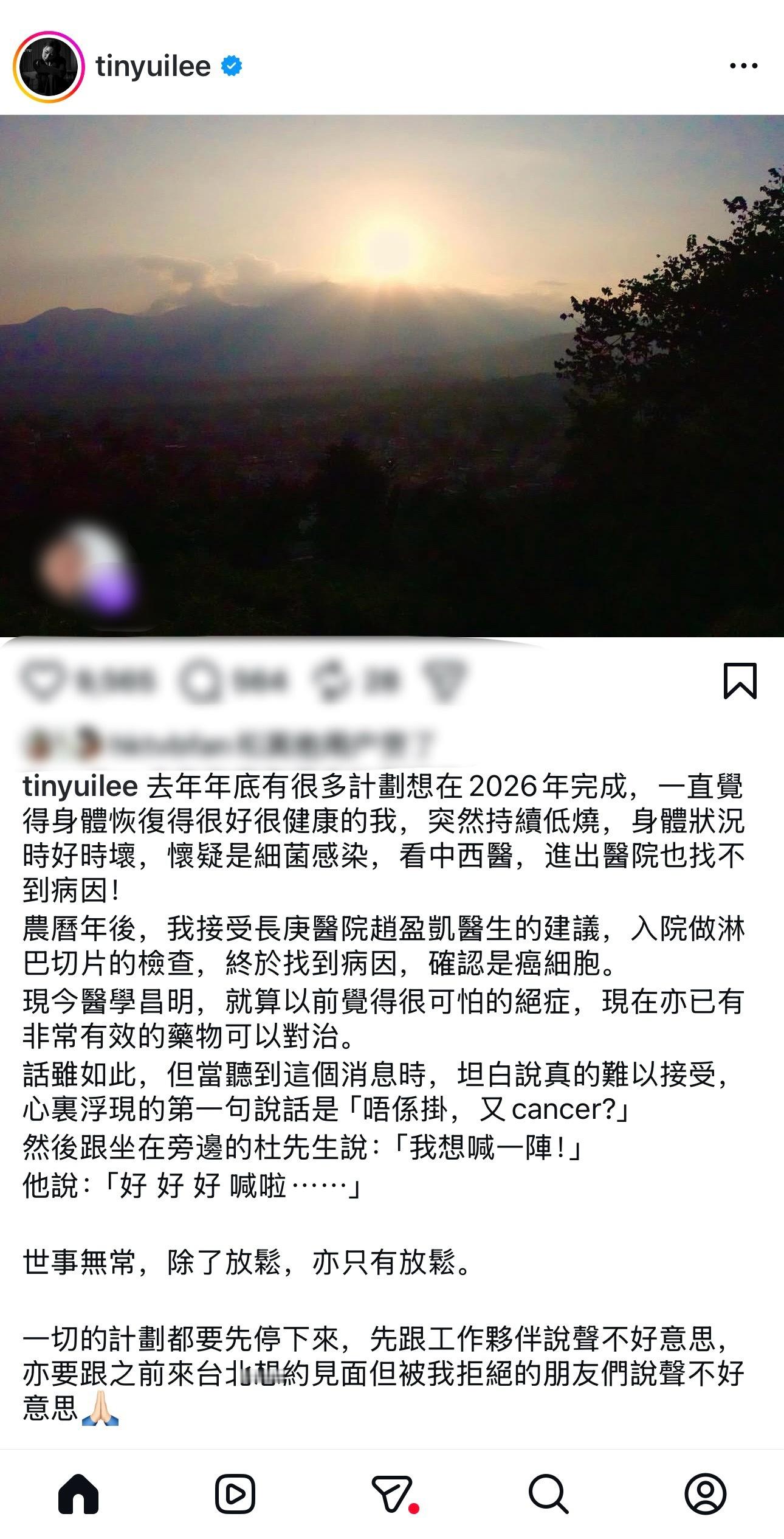 田蕊妮再患癌,肺腺癌康复后一年,田蕊妮做淋巴切片检查证实再患癌。