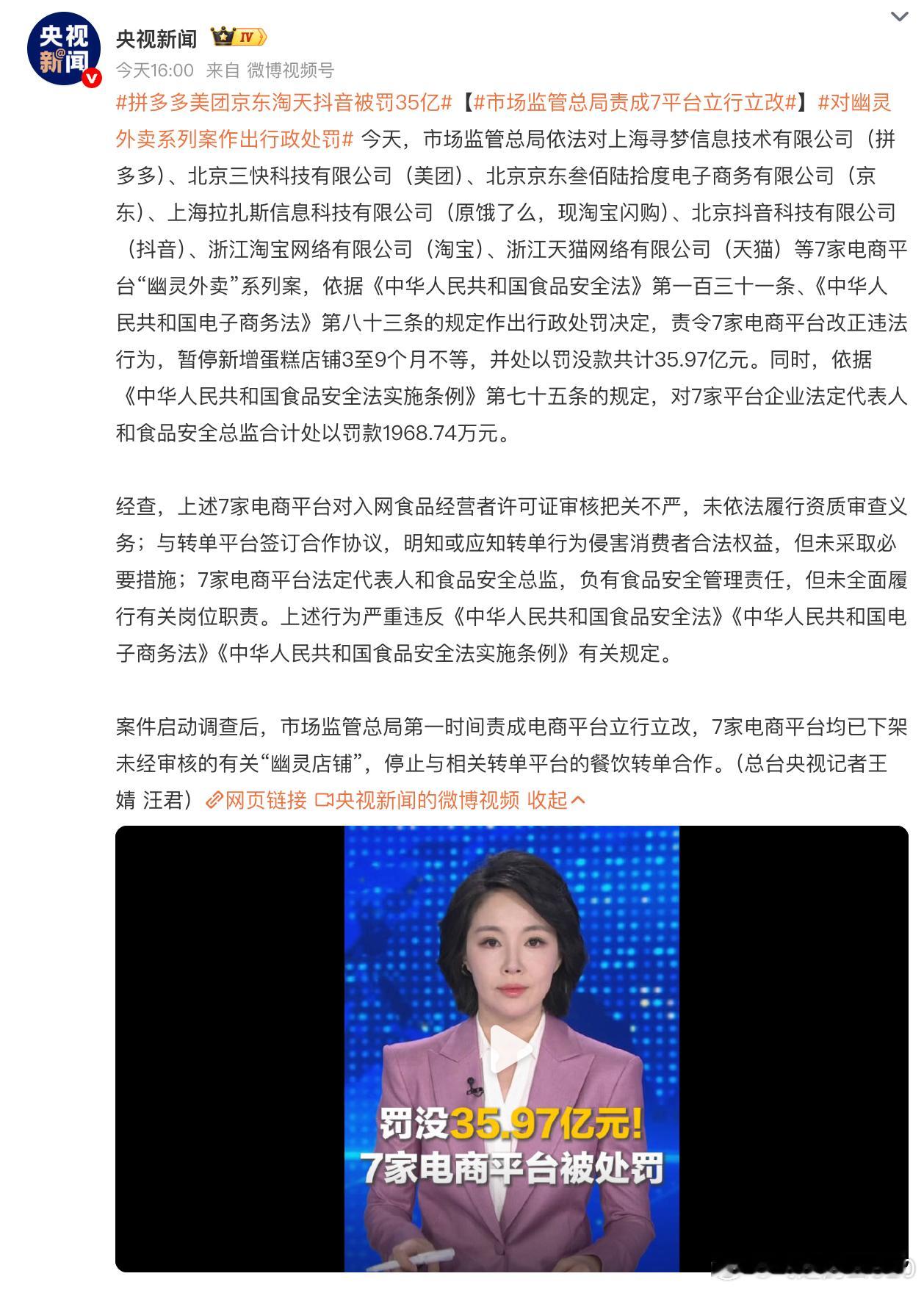 拼多多美团京东淘天抖音被罚35亿