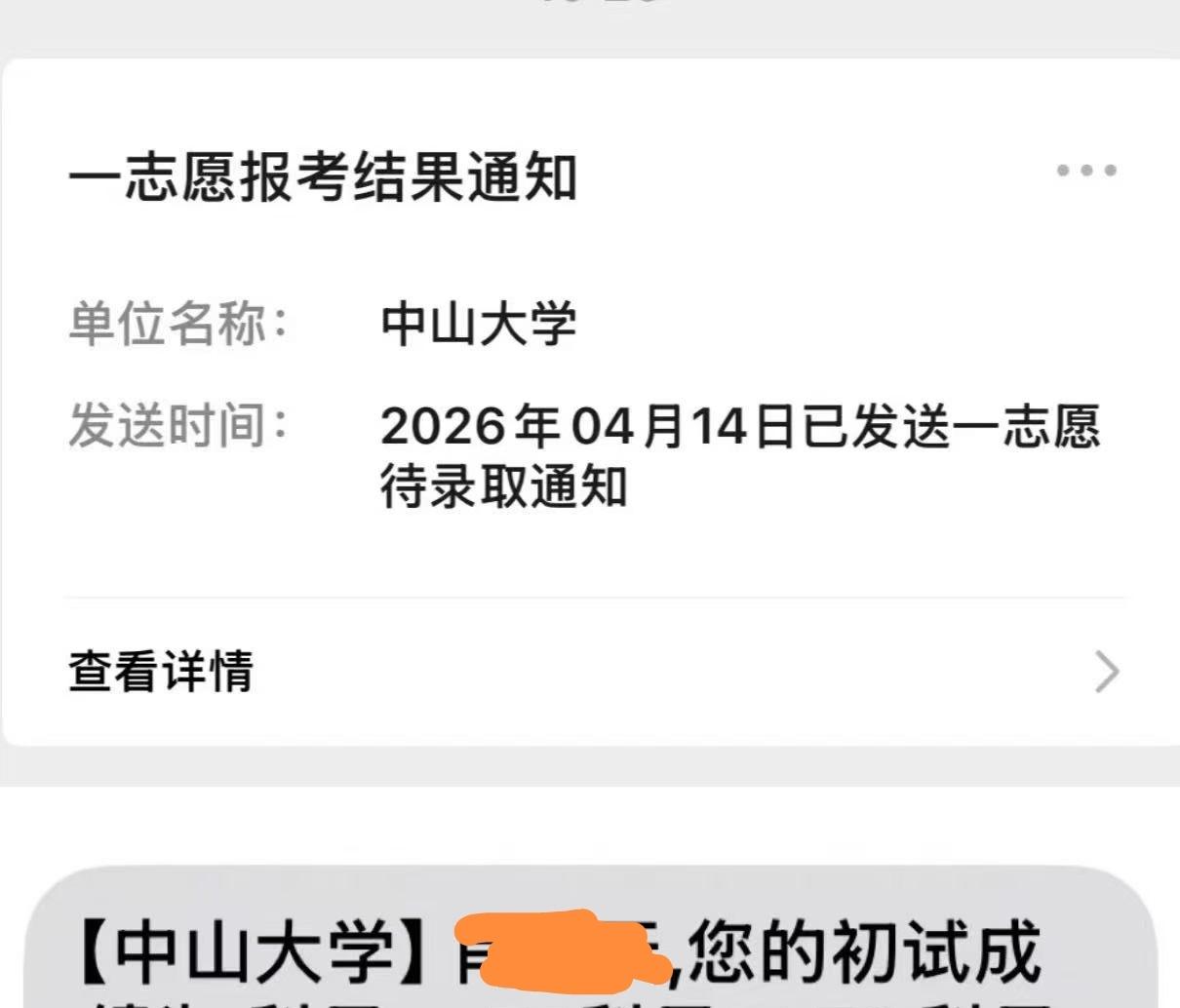儿子今年考研中山大学已经上岸。 说起来儿子这一次考研也是一波三折。他本来是考能源动力,到了10月20日突然告诉我说要改专业。 新专业与儿子本科所学专业有一些联系,但主要部分还是全新的,没有学过。基本算从头开始。不过优点是不需要考数学。 我基本不会插手儿子的事情,只要他自己有信心就好了。 好在结果还不错,顺利上岸,也算是功夫不负有心人。 不过下一步去学校估计还是要努力,毕竟专业课还是欠缺。但只要努力总是会有回报。