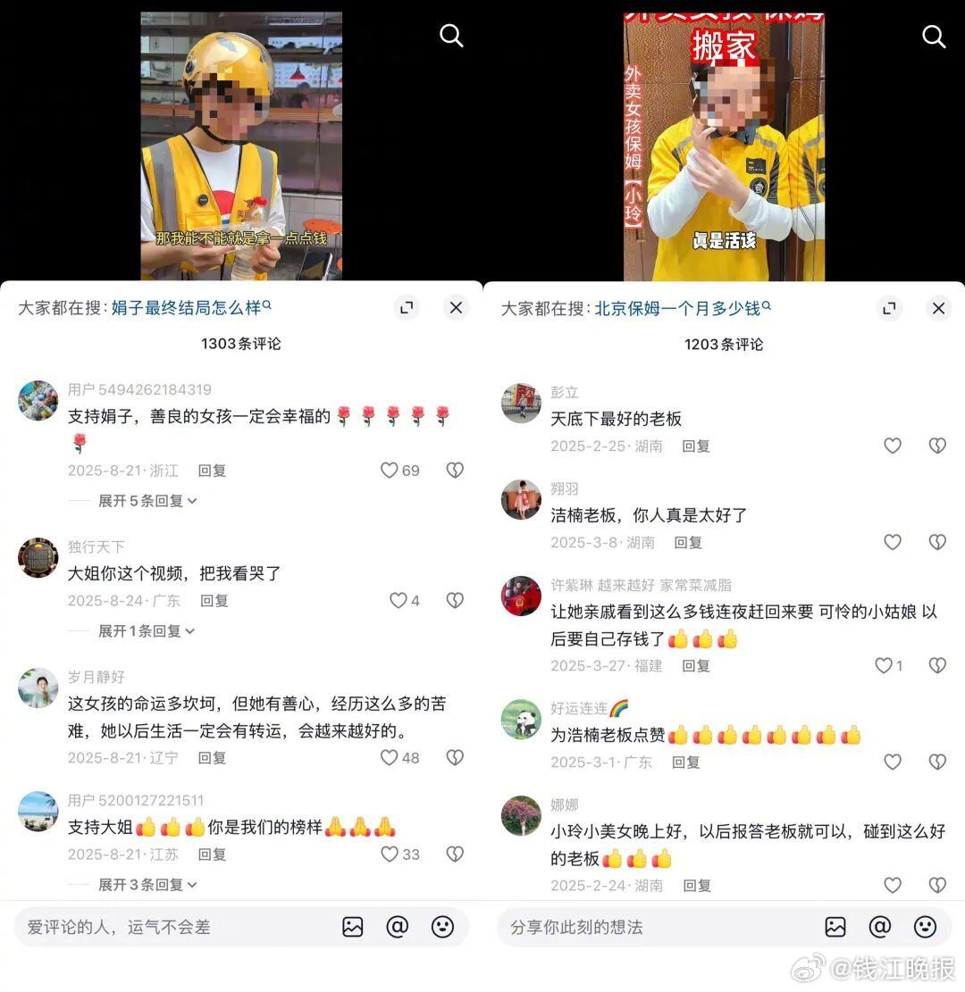 美团表示此前已经关注到“铁柱大导演”在视频中明确提到的“娟子”“浩南”两个账号,其中“娟子”自去年7月开始发布视频,内容包含“寻找20多年未见的女儿竟然怀孕的外卖员”“丈夫见义勇为牺牲,妻子怀孕送外卖维持生计”等“连续剧式”的情节,数个视频互动量超10万;“香港浩南”自去年1月开始发布视频,其打造“香港彭氏集团老板”的人设,视频情节多包含“除夕前夜外卖女孩无家可归”“带20岁外卖女孩回家做保姆”“老板爱上保姆”等。时至今日,“浩南”的所有视频标题均以“外卖女孩保姆”为噱头。