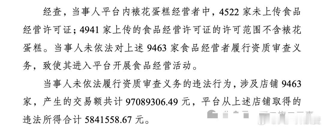 据国家市场监督管理总局公布的,对拼多多的行政处罚决定书中显示,拼多多平台上有将近9500家裱花蛋糕经营者存在问题,其中一半没上传许可证,另一半上传的许可范围不含裱花蛋糕。平台对此睁一只眼闭一只眼,还抽佣了584万多。