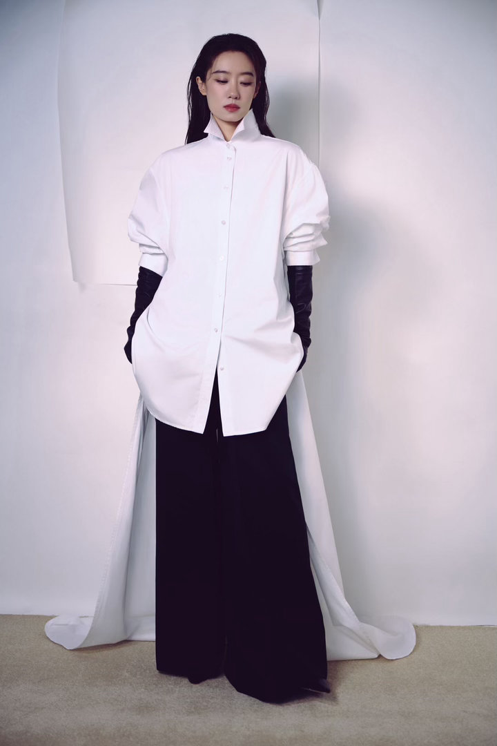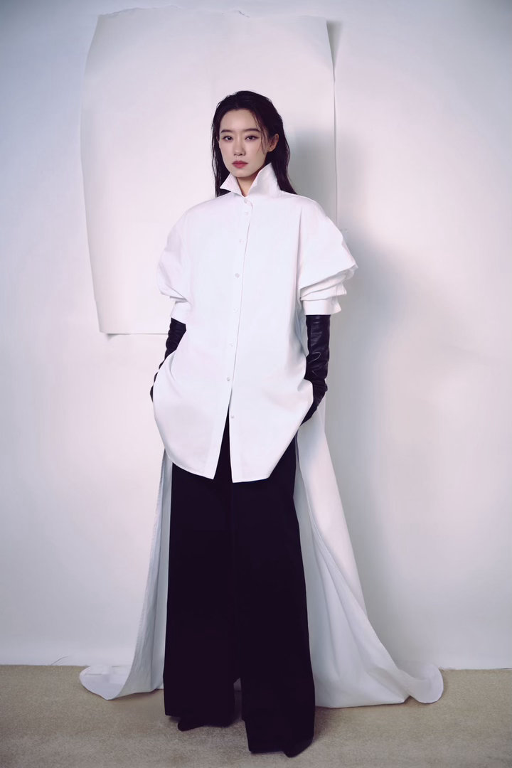 北京国际电影节 主竞赛单元评委、巴黎世家品牌挚友张小斐身着夏季26系列第8套造型出席开幕红毯,白色衬衫搭配西裤与皮革长手套,以前短后长的建筑感廓形与背部延伸裙裾打造拖曳造型。该套造型来自新任品牌创意总监Pierpaolo Piccioli执掌的首个系列。 时尚灵感解读