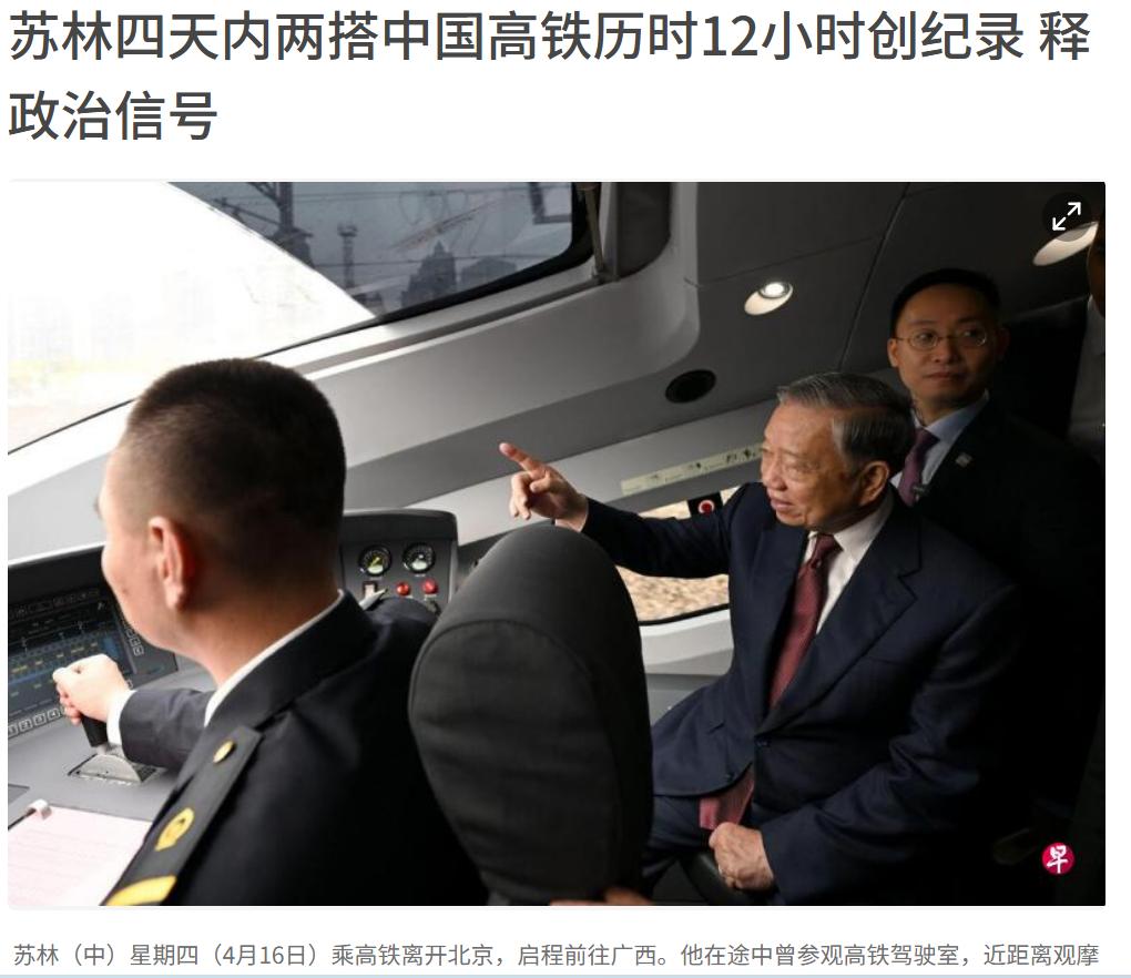 越南高铁会选中国建造,苏林在中国做高铁做到上瘾。先是体验了一下北京到雄安新区的短途,结果一发而不可收拾,回国也不坐专机了,非要坐十几个小时的高铁到广西。越南国土狭长,非常适合建高铁,一条高铁就可以通全国。 苏林体验完我们的高铁就会明白,全球运营超长线路高铁的经验,日本、德国、法国是不能和中国比的。虽然现在德国西门子先拿到一部分订单了,我猜这只不过是越南计策,他不想完全依靠中国,搞西门子进来更好让我们转移技术。