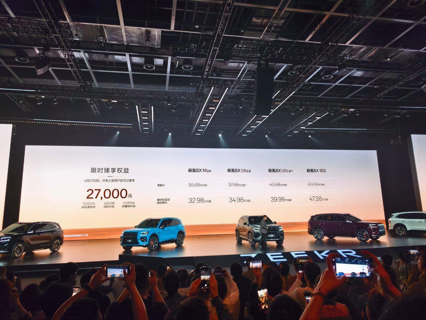 曜影版顶配不到50万,这价格感觉能给自己狠狠的省一笔钱了 极氪8X上市限时售价32.98万元起