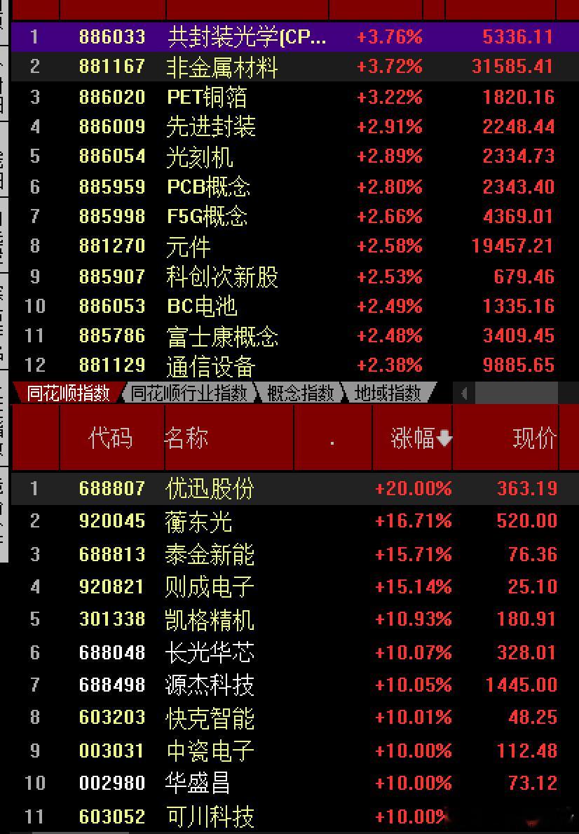 量能2.42万亿多,比昨天放大了900多亿,有了量就好办不过几大指数都红,沪指四阳一阴K线,周涨幅1.64%,整体是修复反弹形态,本周领涨前五名板块是能源金属,CPO光模块,元件,pCB概念等,说明了啥