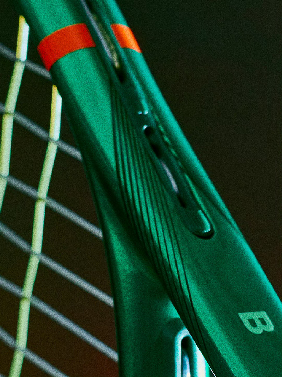 另外,这款碧玺绿的识别度比V9更高,从很远的地方就可以一眼认出,虽然我个人还是更喜欢官图中类似上一代的暗绿色,而不是图二自己手机实拍的光亮漆水。还有,拍体上印着并不对称的X-LOOP橘色标记,据说那是指拍颈三角区的重装设计。