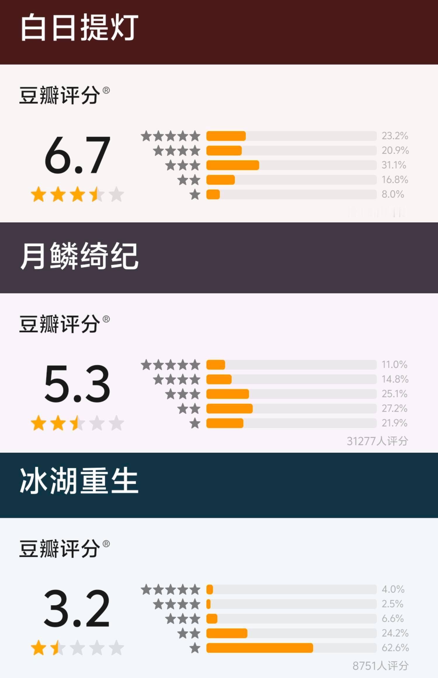 今日豆瓣剧开分影响因素:白日提灯:老对家月鳞绮纪:内战冰湖重生:与世界为敌