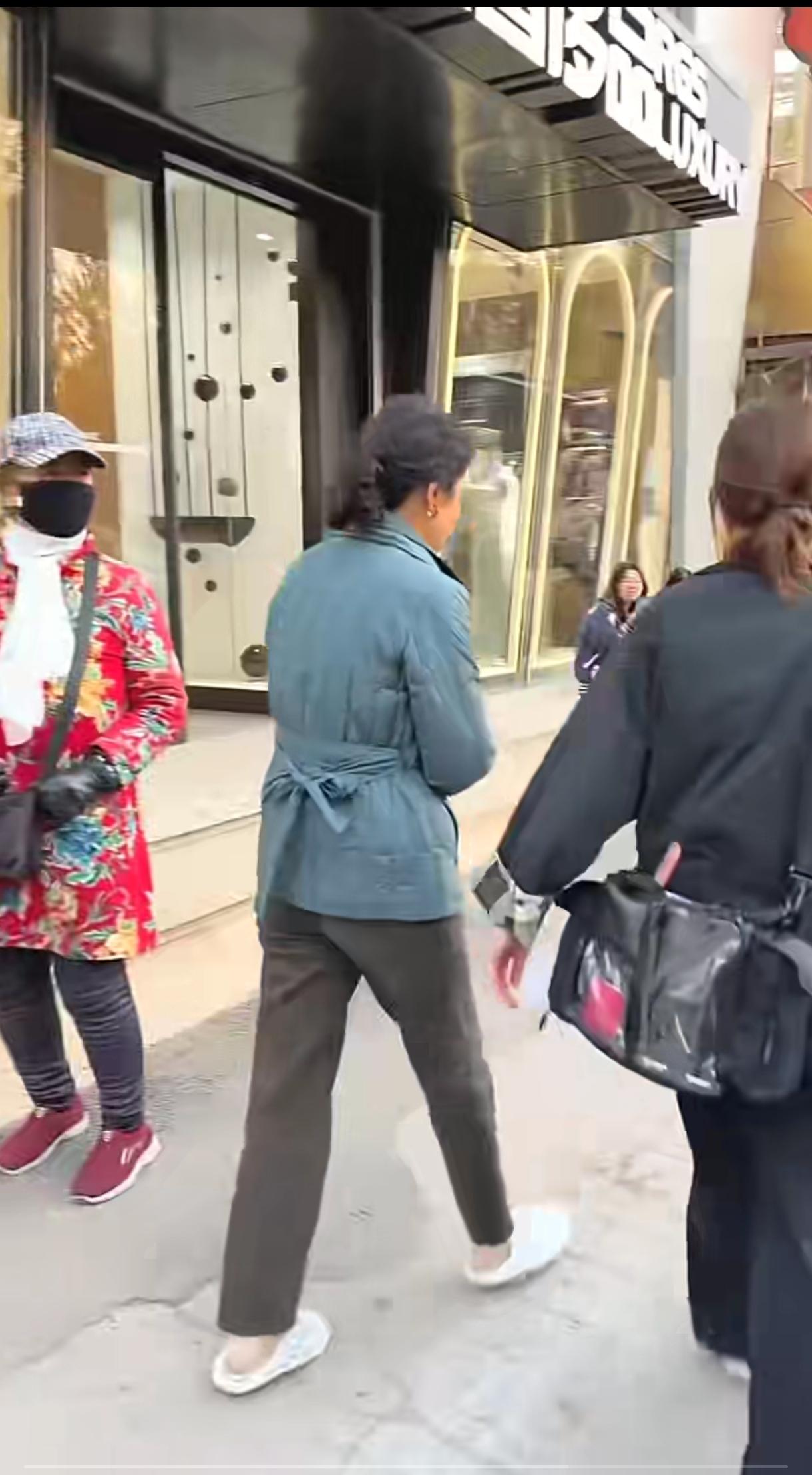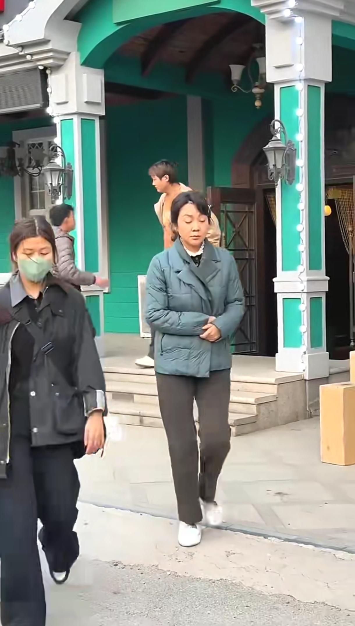 闫妮穿拖鞋,素颜,走在大街上普普通通。这身打扮像农村大姐,很接地气。